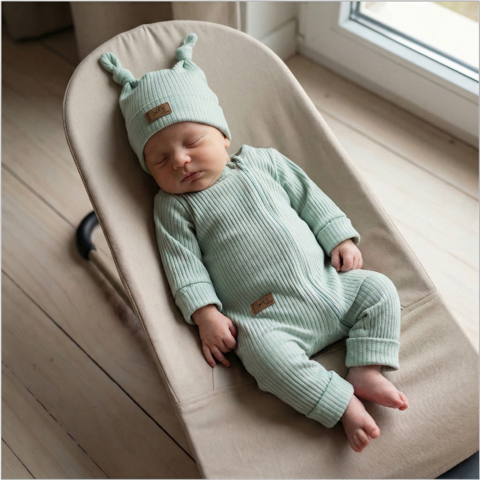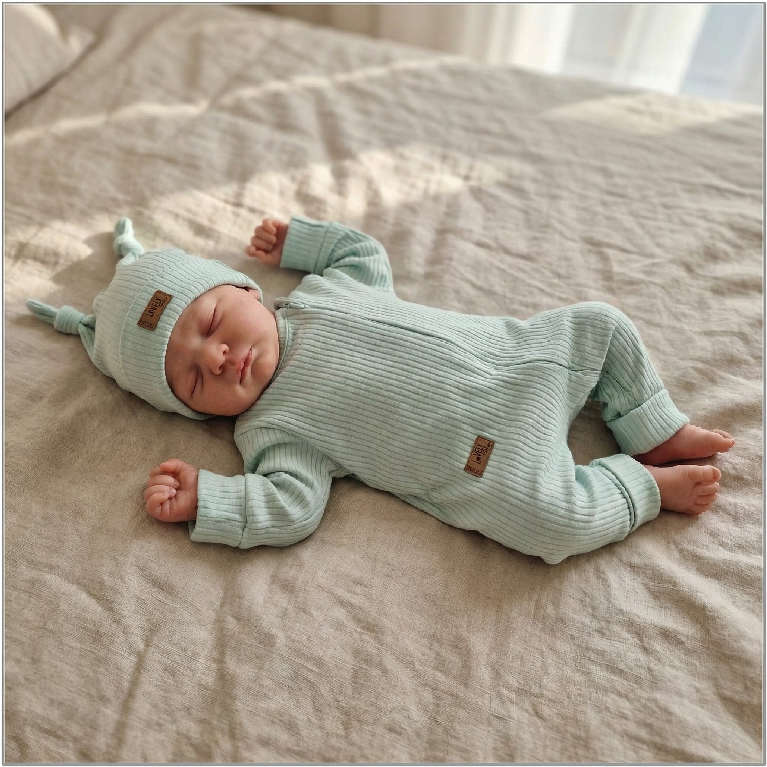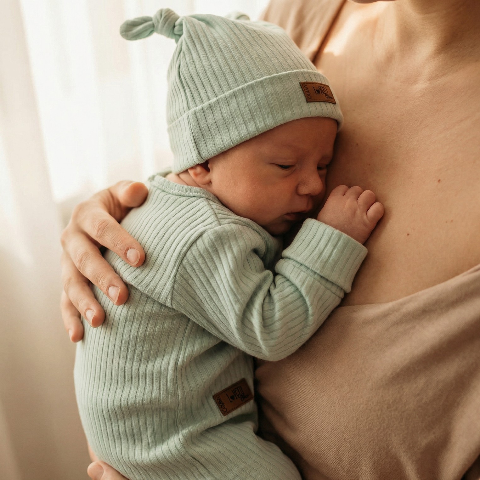 Zarówno czapeczka jak i pajacyk są elastyczne i wygodne dla dziecka.