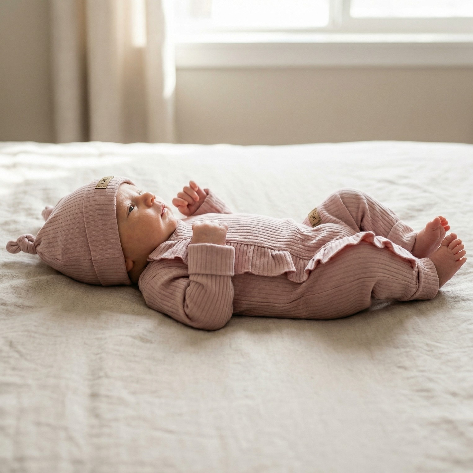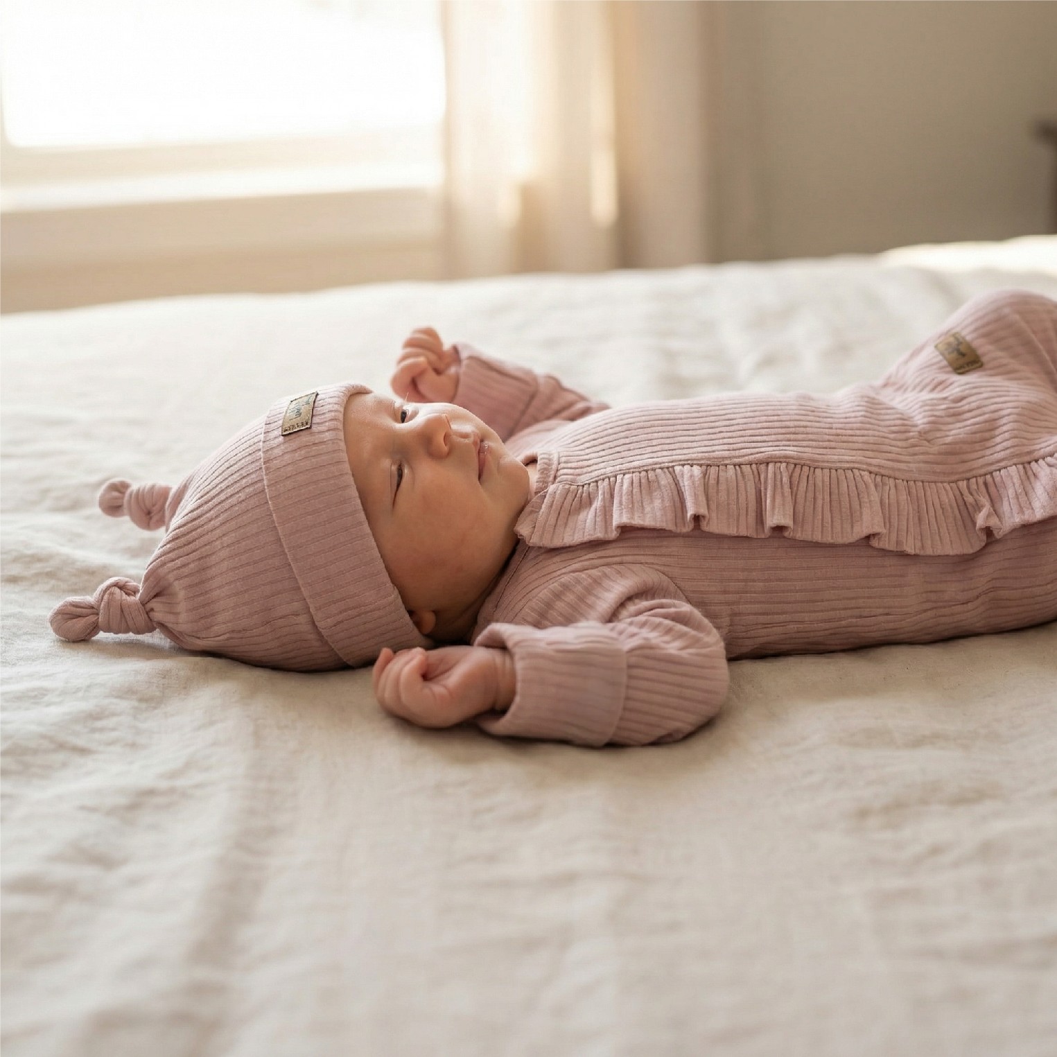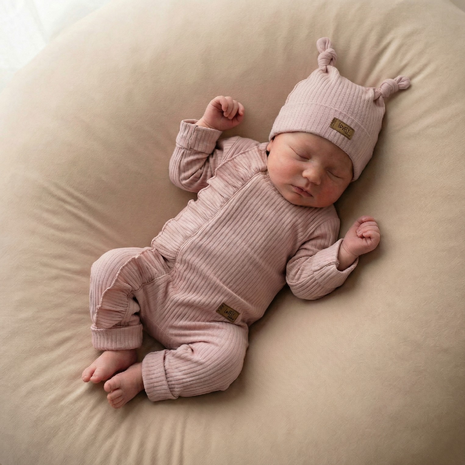 Zarówno czapeczka jak i pajacyk są elastyczne i wygodne dla dziecka.
