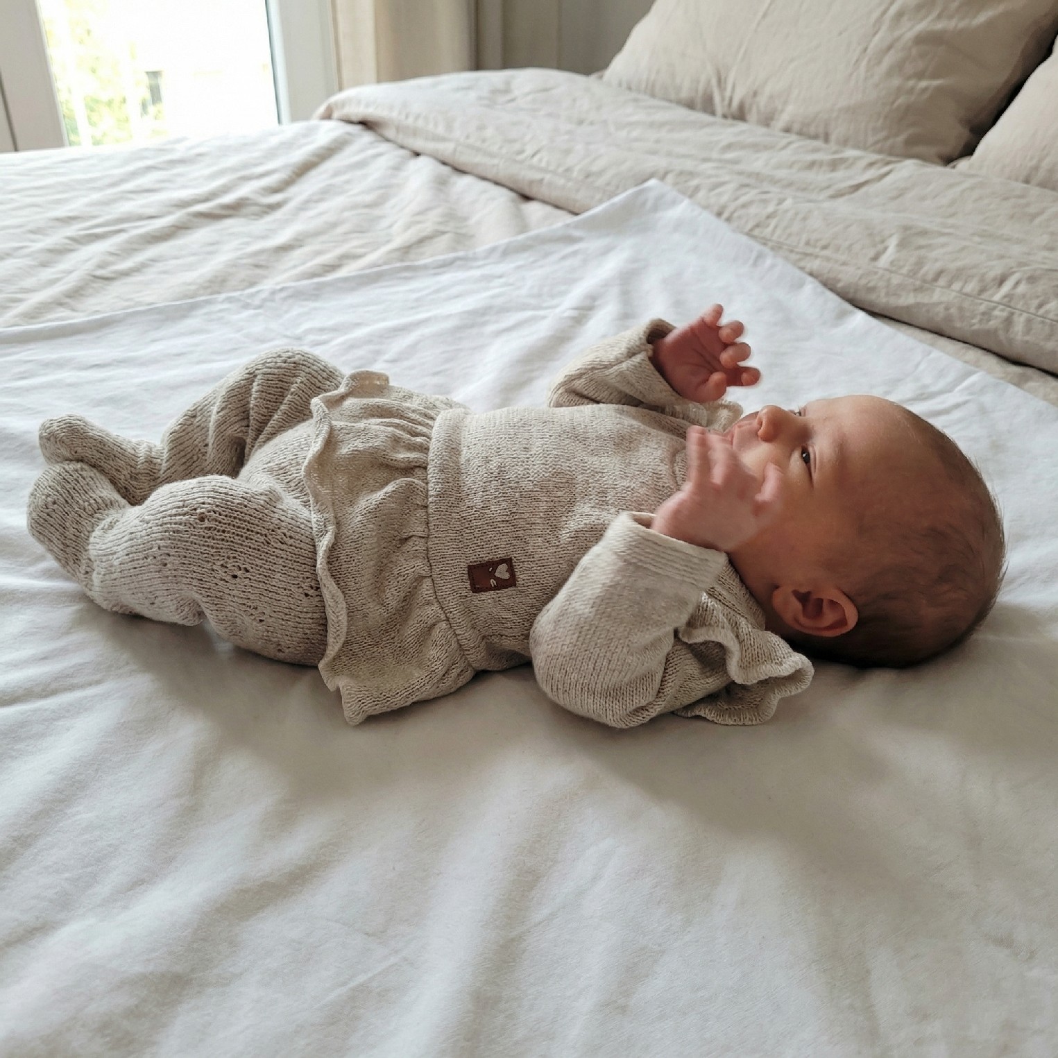 KAZUM 4cz włóczkowy komplet ażurkowy z falbanką 56-68 hazelnut
