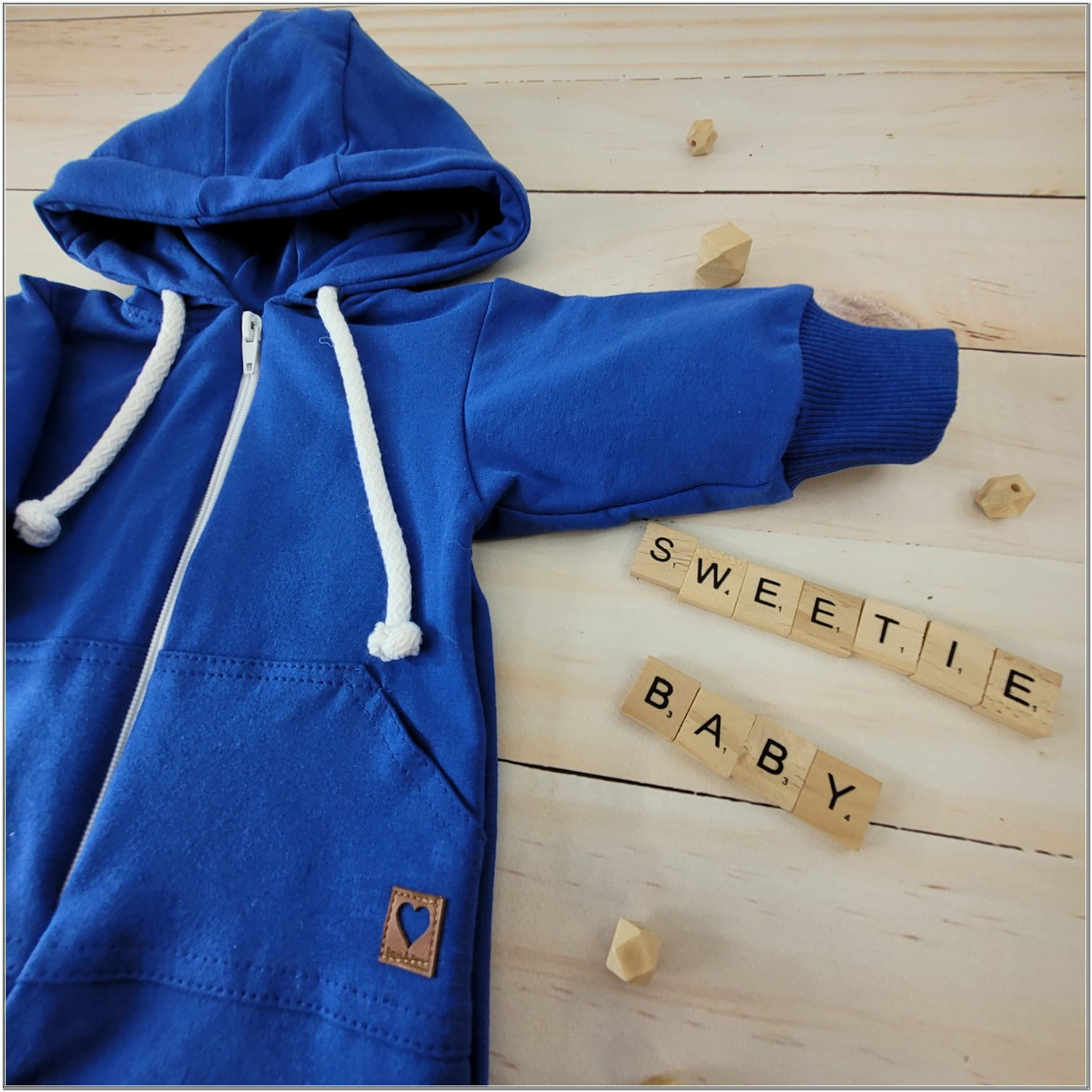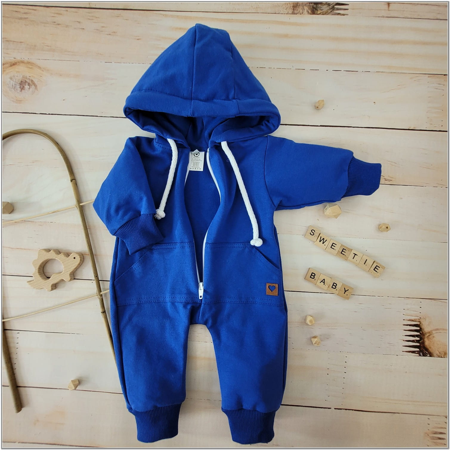 Bawełniany kombinezon dresowy z kapturem. Ozdobny pajac dzienny.