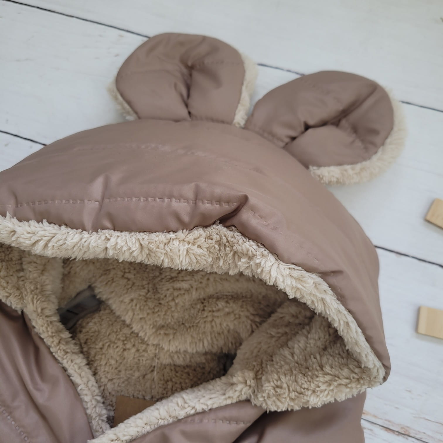 Śpiworek ocieplany do fotelika czekoladowy z misiem w środku