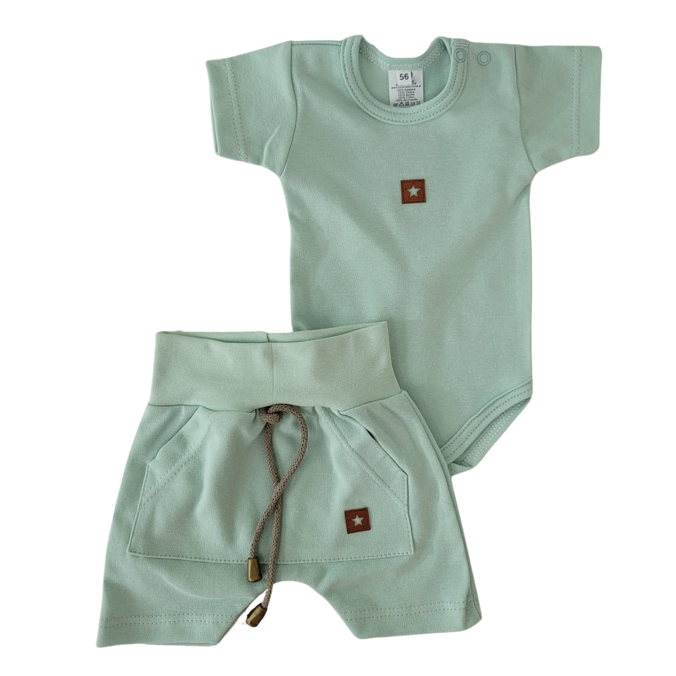 2 cz bawełniany komplet na lato body+spodenki zielony aqua ostatnie sztuki 56-74