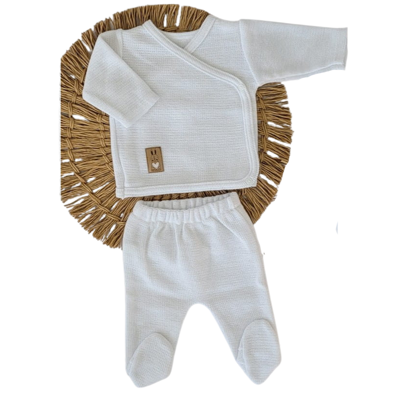 2 cz włóczkowy komplet kaftanik+półśpioch 56-62 biały