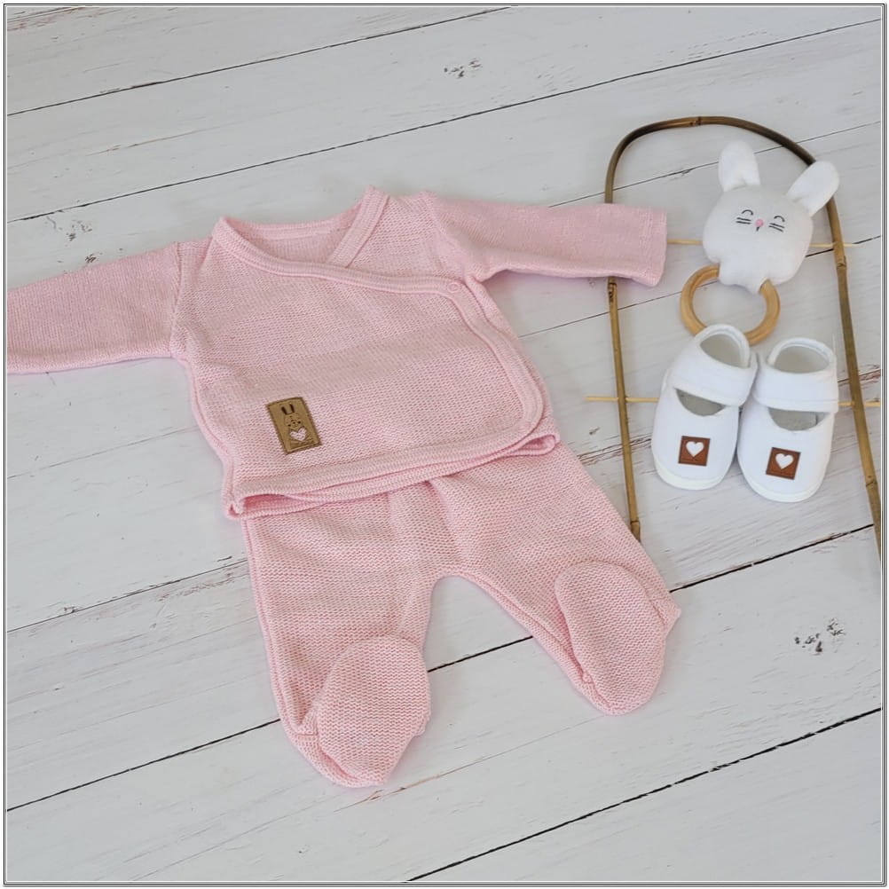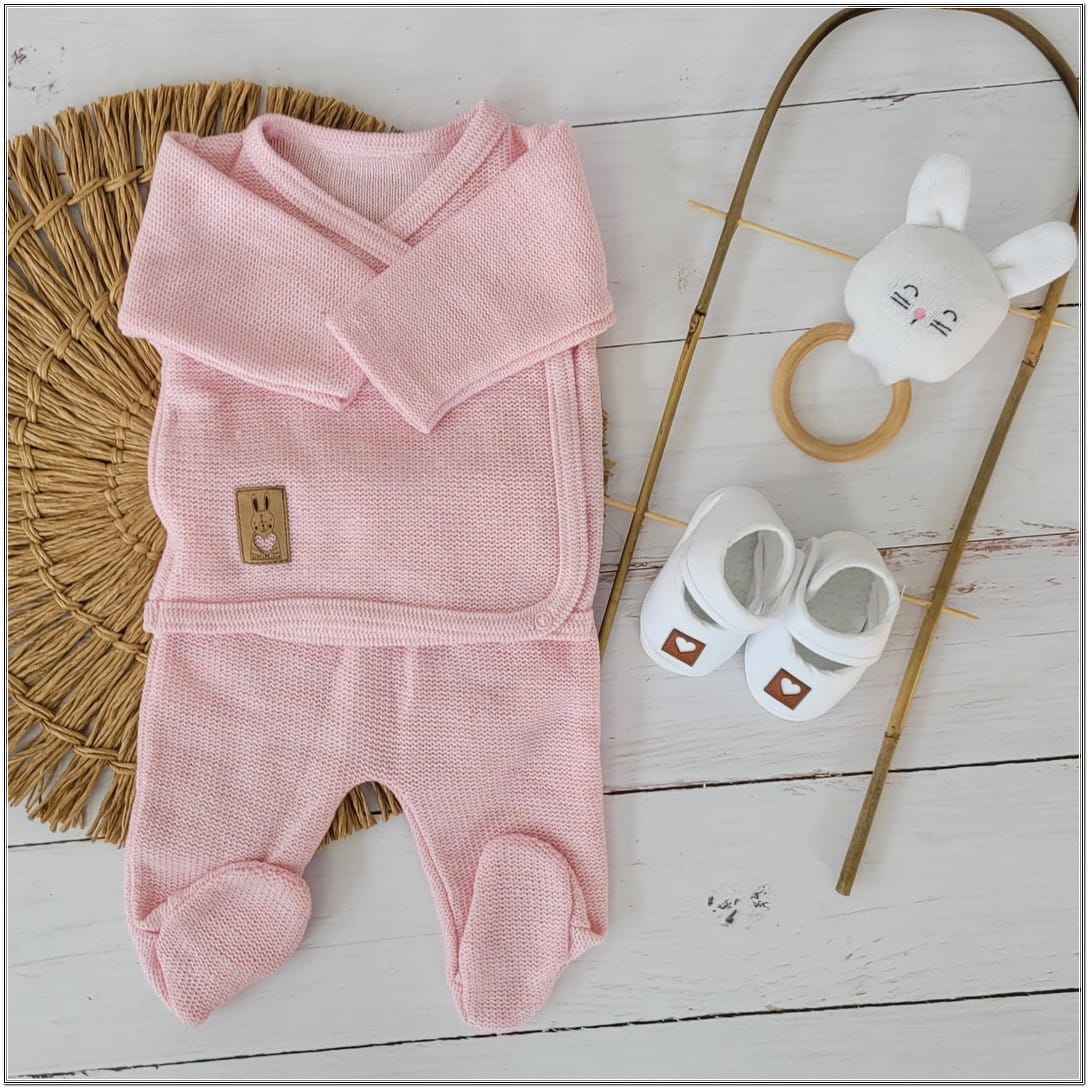 2 cz włóczkowy komplet kaftanik+półśpioch 56-62 różowy