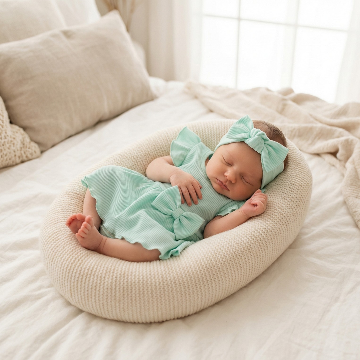 2 cz zestaw komplet bodosukienka prążkowana sukienka+opaska 56-86 miętowa