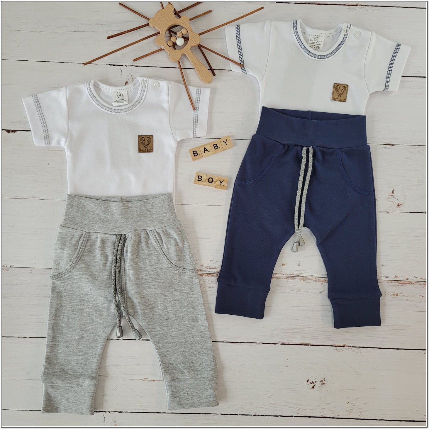 2 cz zestaw komplet body+spodnie szary ostatnie sztuki 68, 74, 80