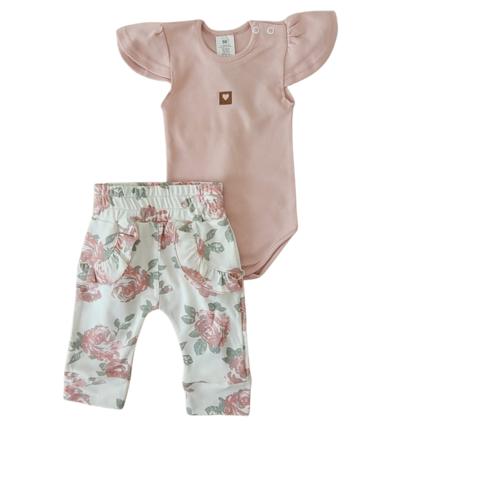 Body z krótkim rękawkiem+ spodnie wygodne bawełniane z falbankami
