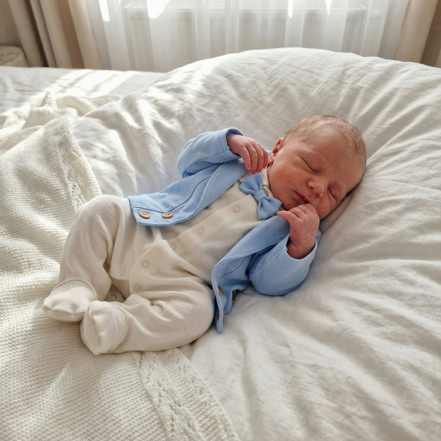 Elegancki wyjściowy garnitur na chrzest, wesele. Modne wygodne ubranko