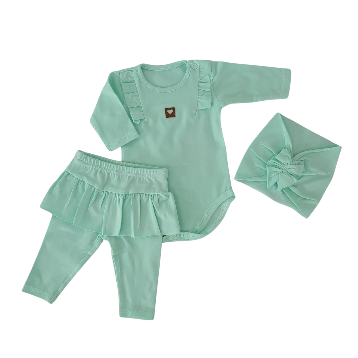 3cz KOMPLET body + legginsy ze spódniczką + opaska 56-86 miętowy