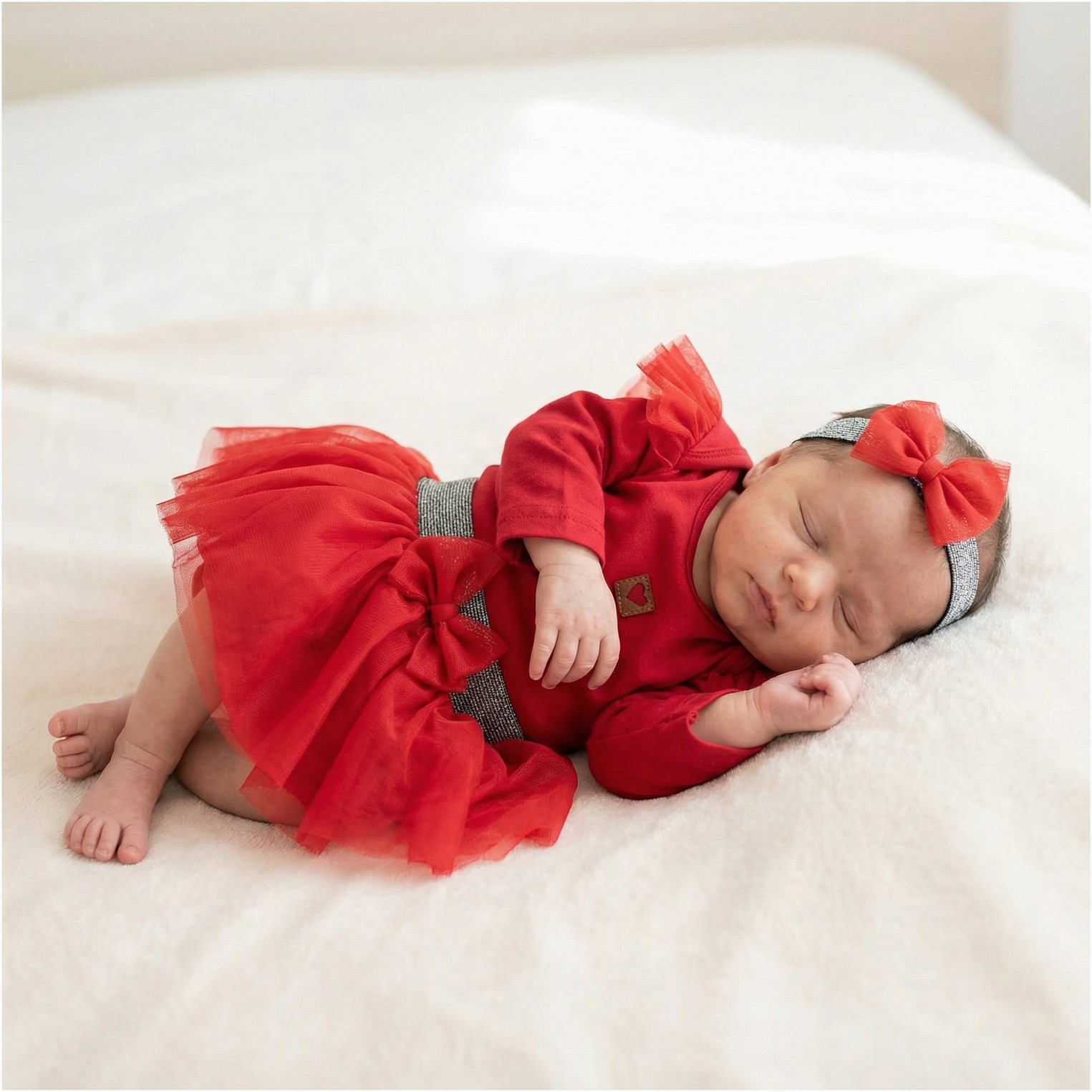 Piękny delikatny zestaw tiulowy 3-częściowy Komplet w kolorze czerwonym