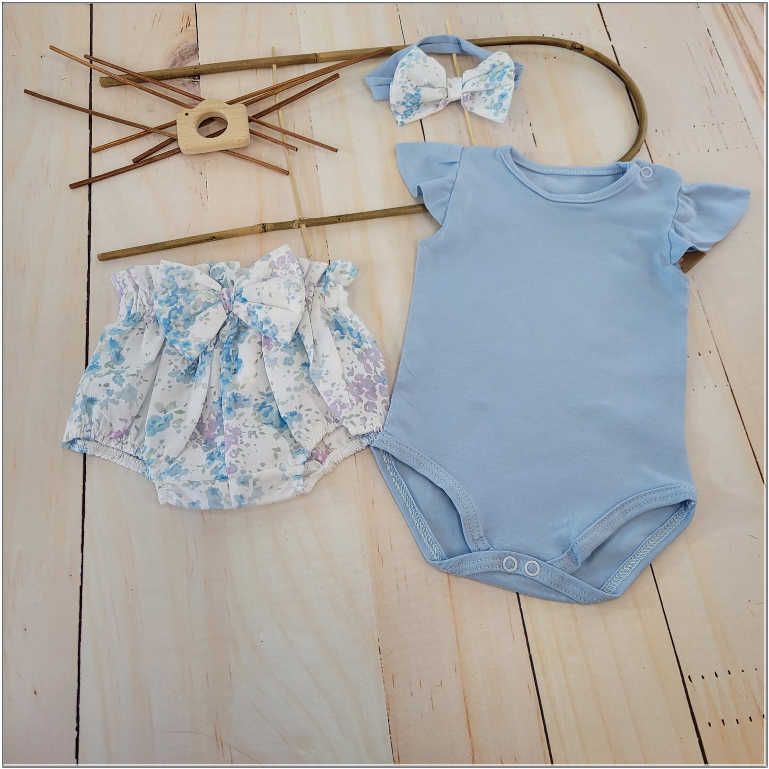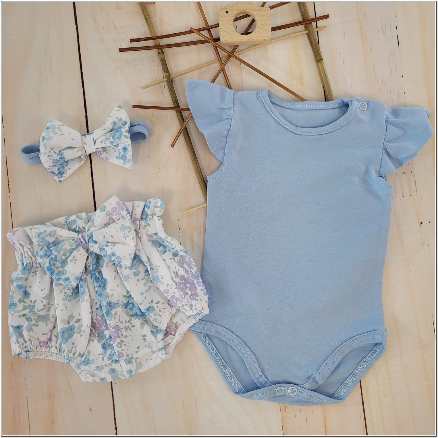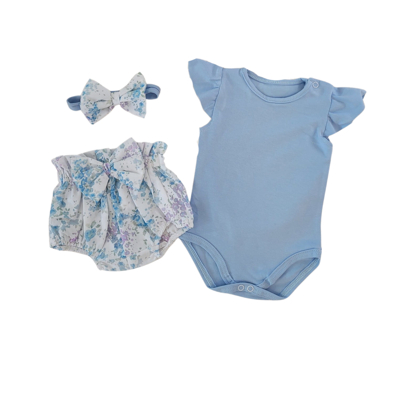 3cz zestaw komplet lato body+bloomersy+opaska błękit ostatnie sztuki 56, 68, 68