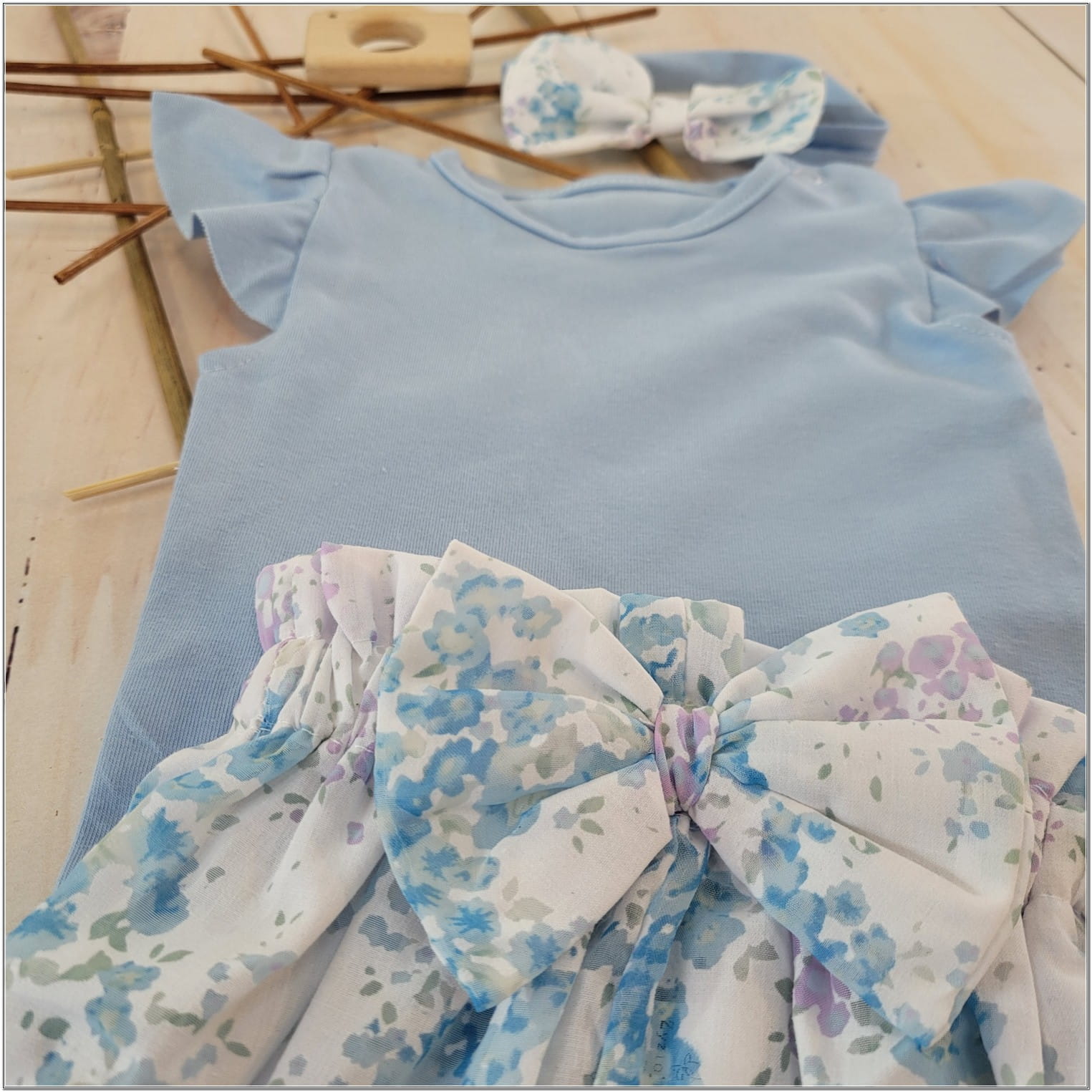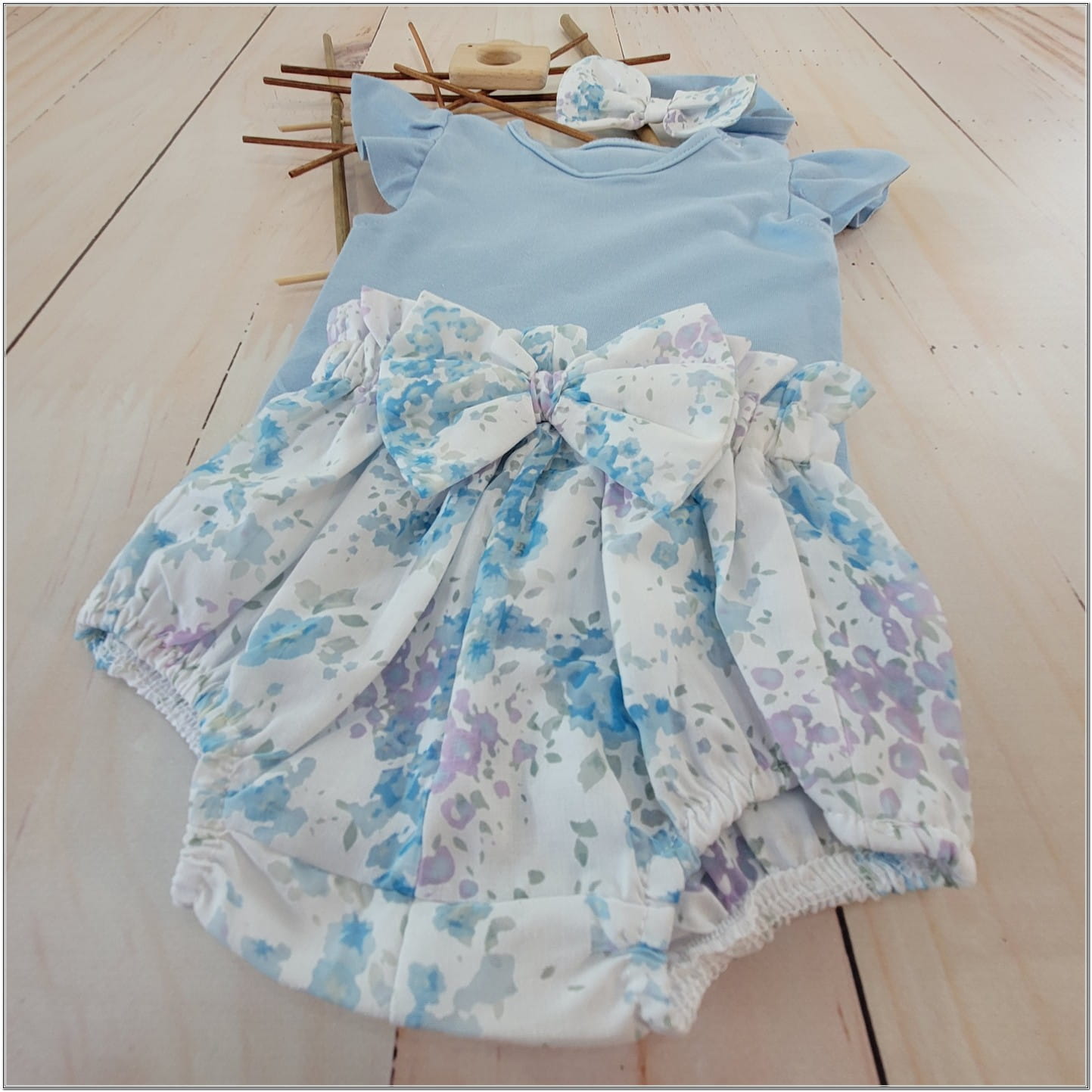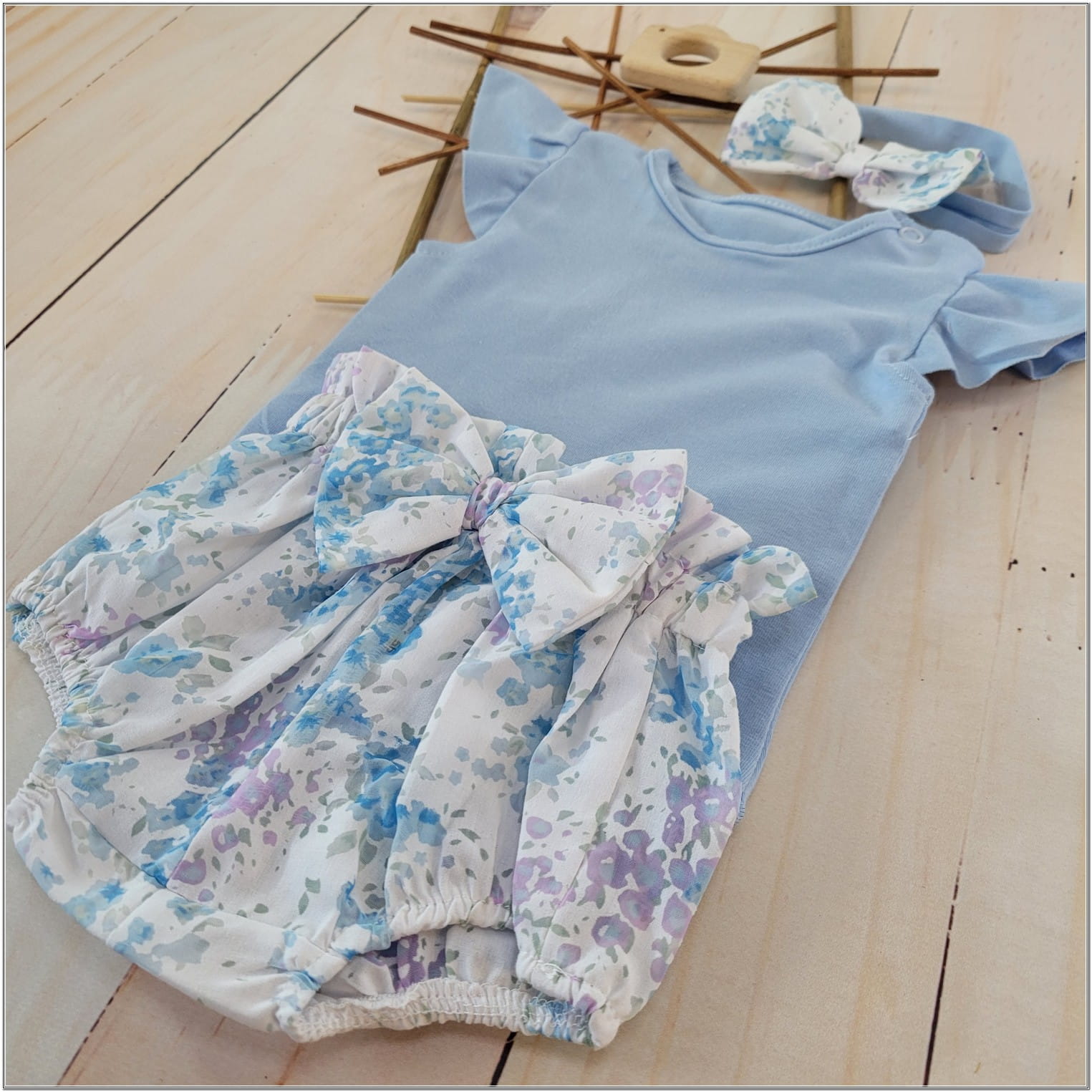 3cz zestaw komplet lato body+bloomersy+opaska błękit ostatnie sztuki 56, 68, 68