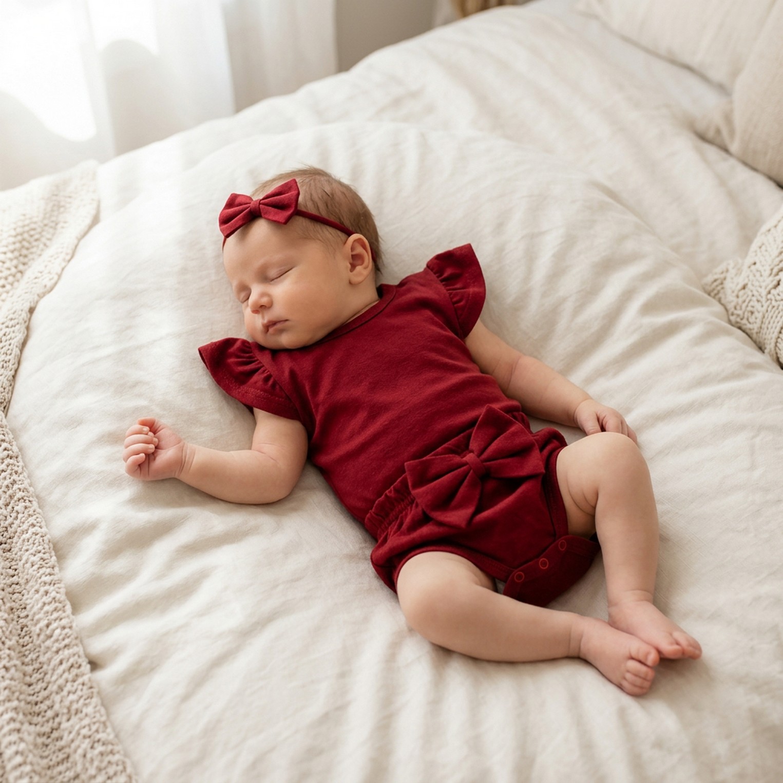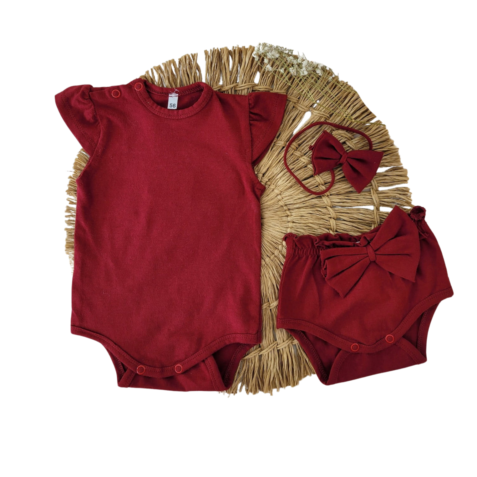 3cz zestaw komplet lato body+bloomersy+opaska z kokardą 56-86 bordowy