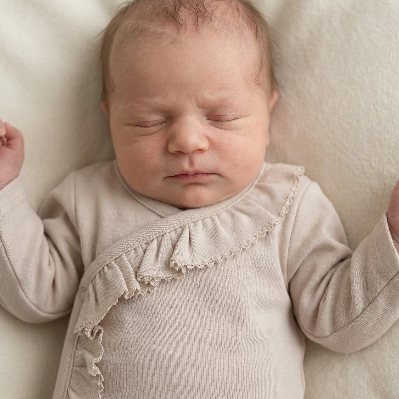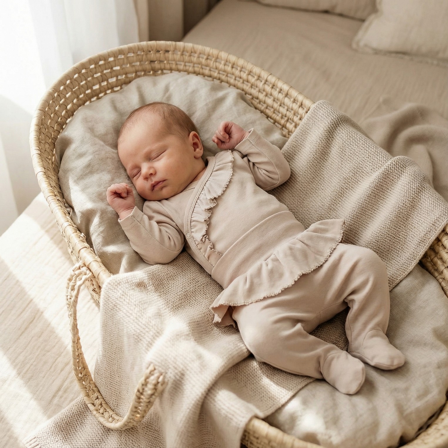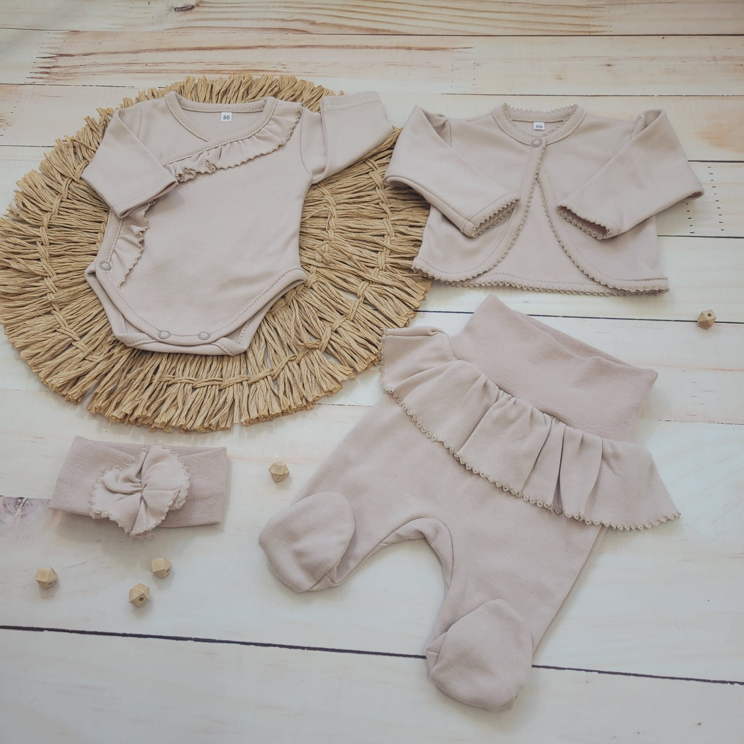 4 cz bawełniana WYPRAWKA z falbanką do szpitala 50-62 beżowa