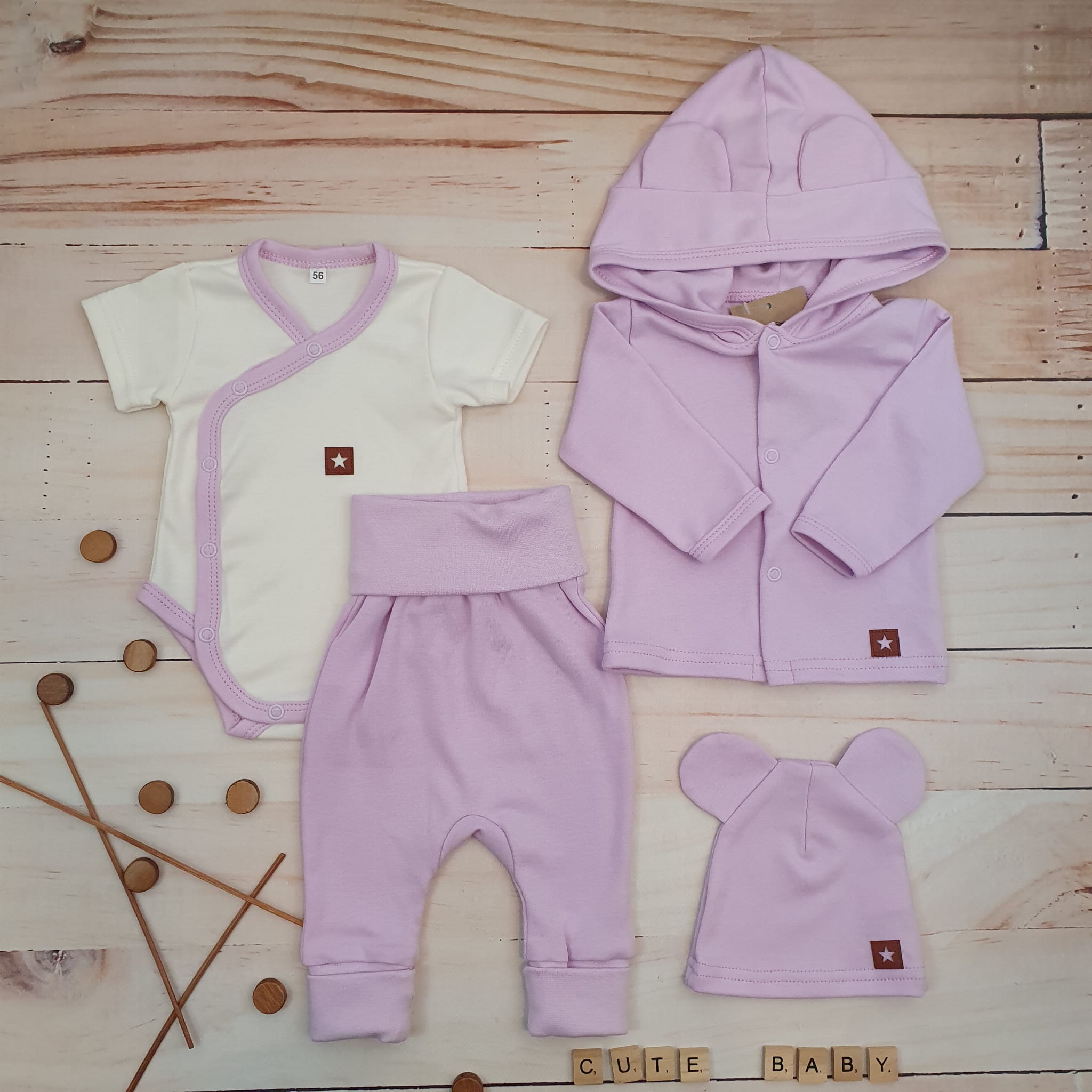 4 cz bawełniana kompletna WYPRAWKA do szpitala 50-62 liliowa