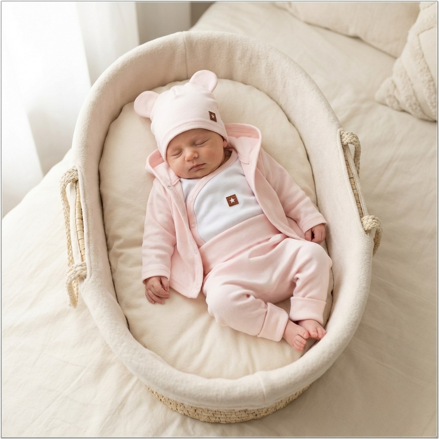 4 cz bawełniana kompletna WYPRAWKA do szpitala 50-62 pudrowy róż