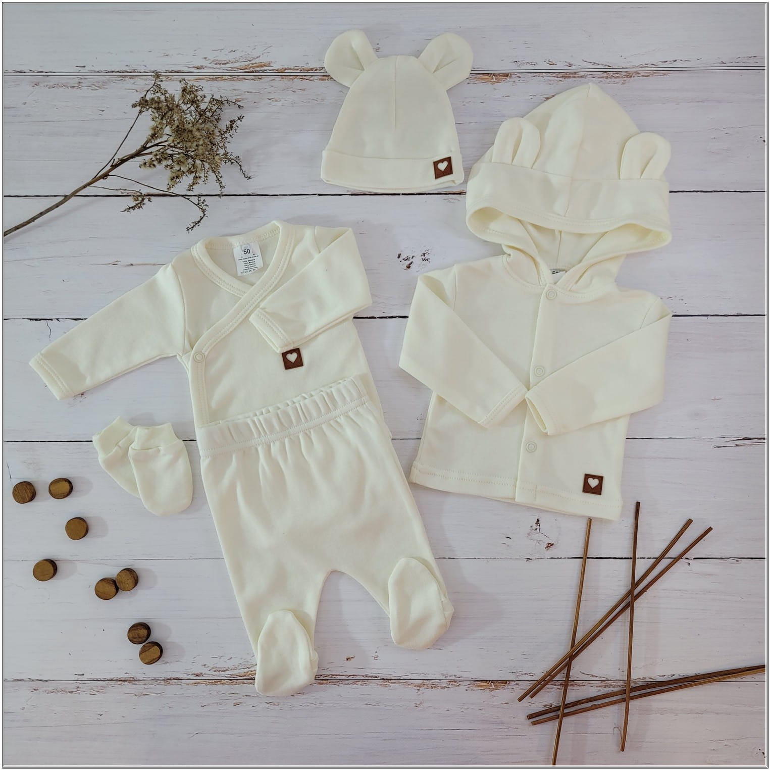 5 cz bawełniana kompletna WYPRAWKA do szpitala 50-62 ecru
