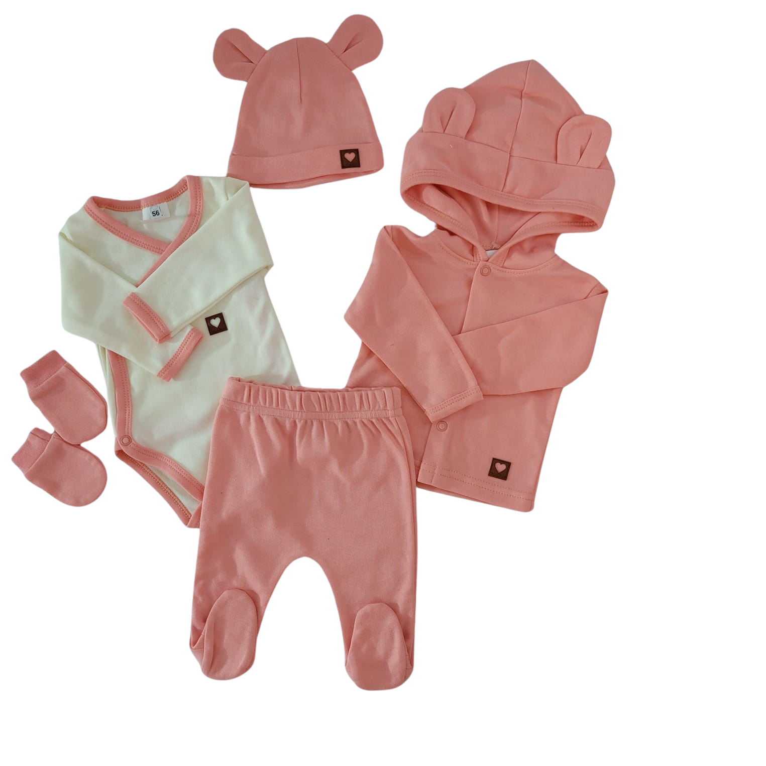 5 cz bawełniana kompletna WYPRAWKA do szpitala 50-62 koralowy róż