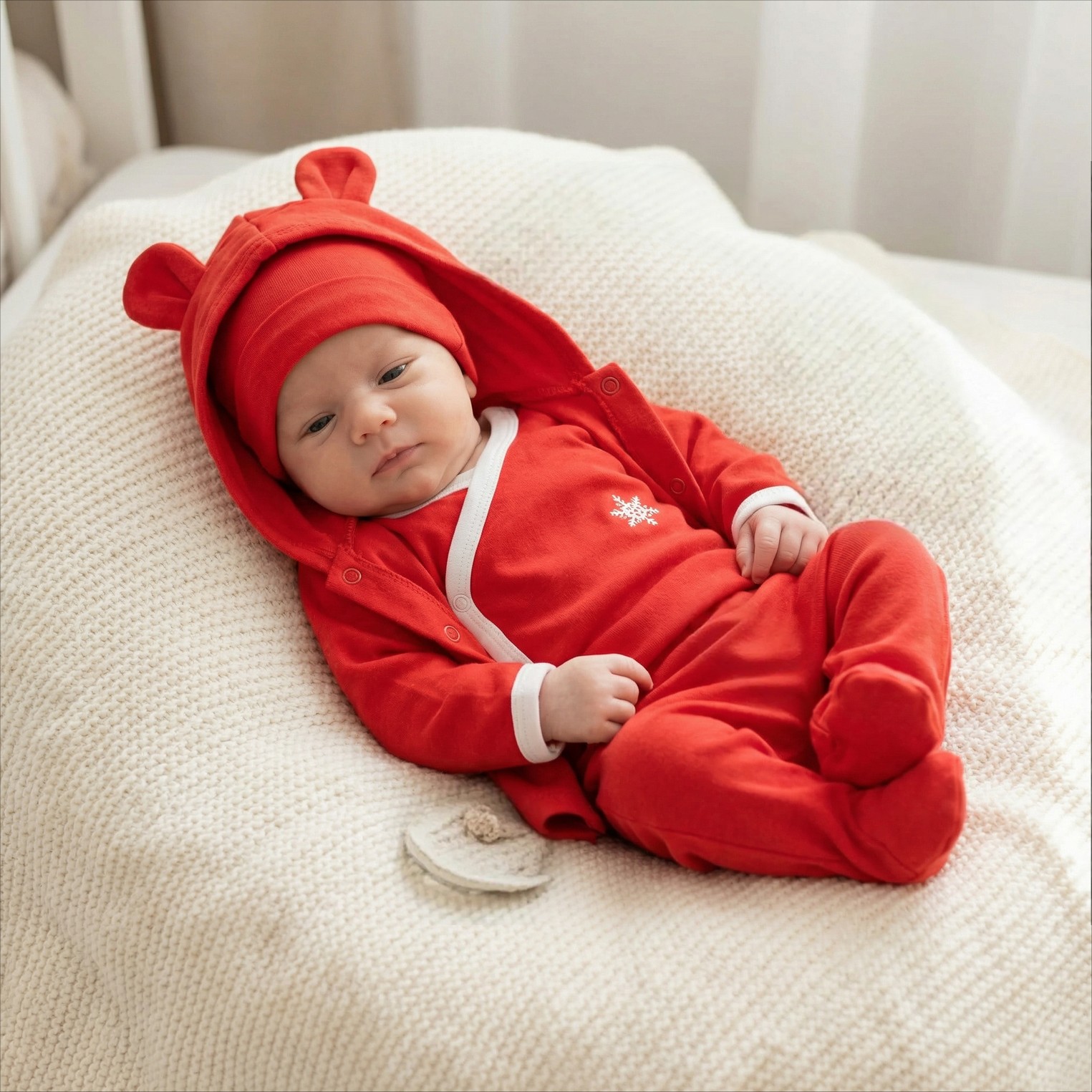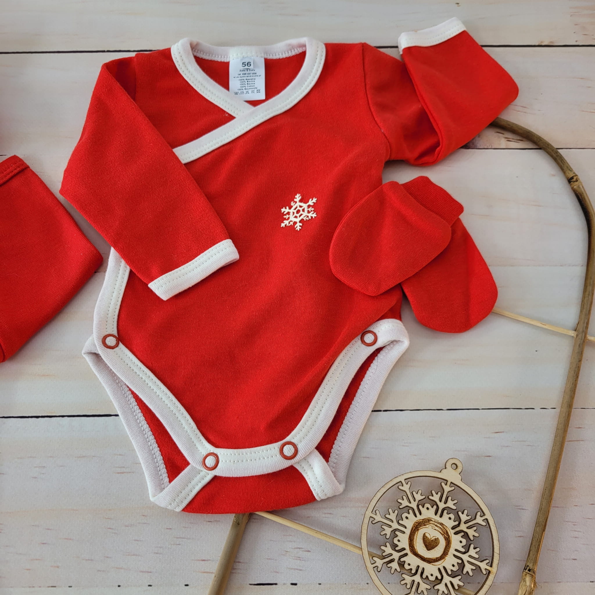 Czerwona wyprawka ze śnieżynką na Święta, gwiazdę
