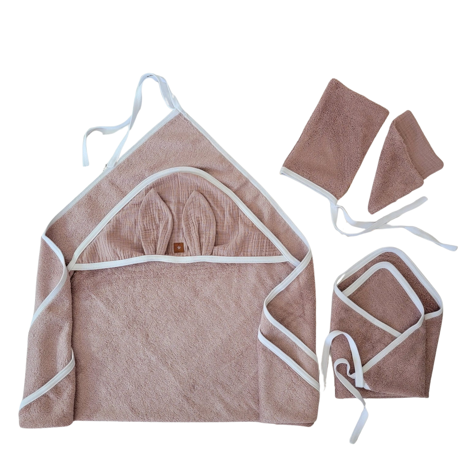 Bambusowy komplet kąpielowy dla niemowlaka: okrycie, ręczniczek oraz myjki - brudny róż