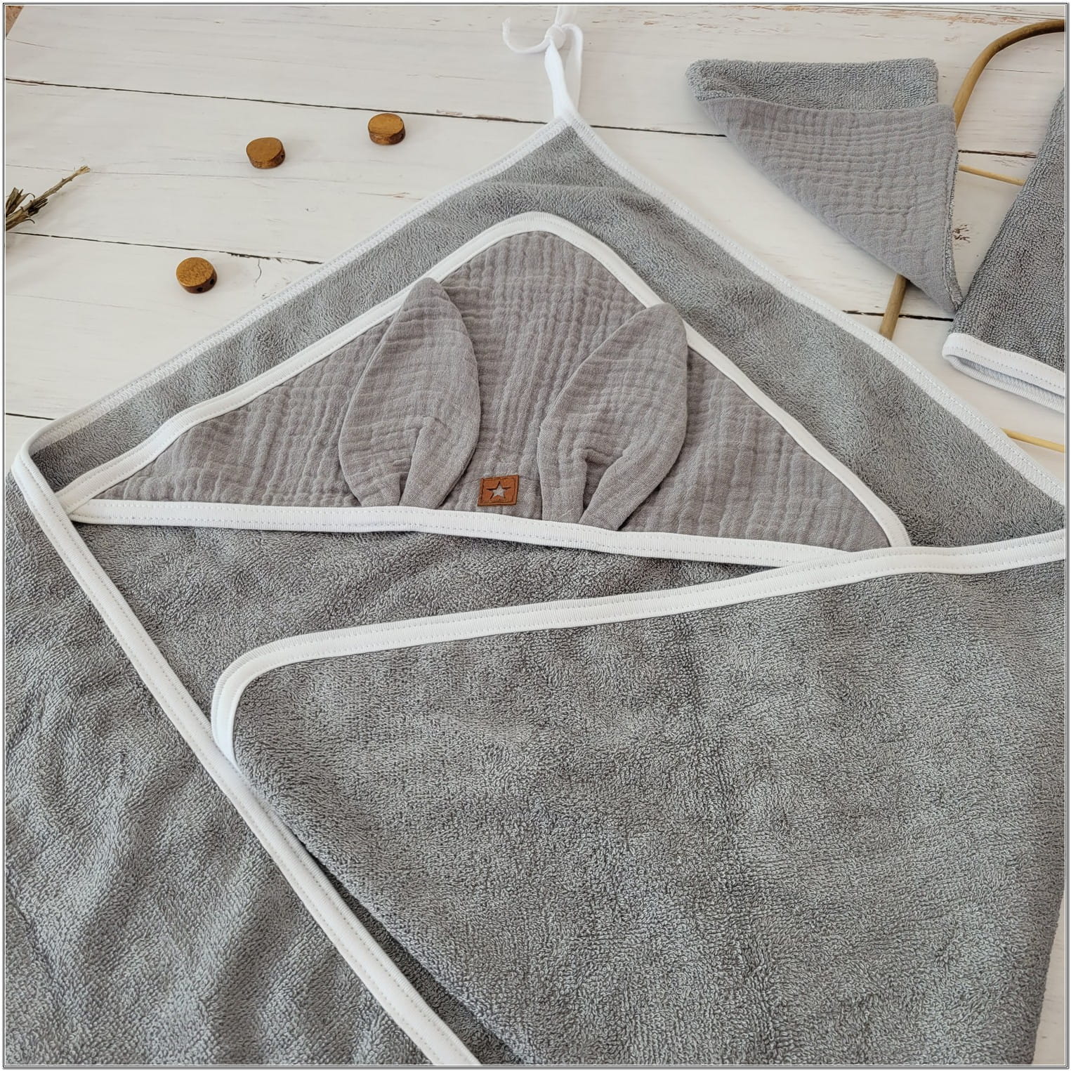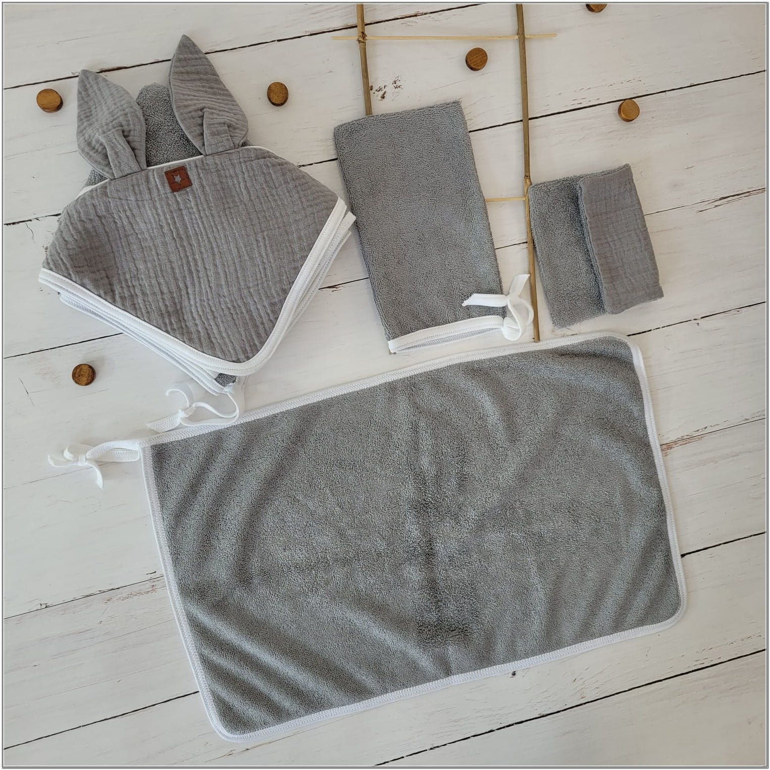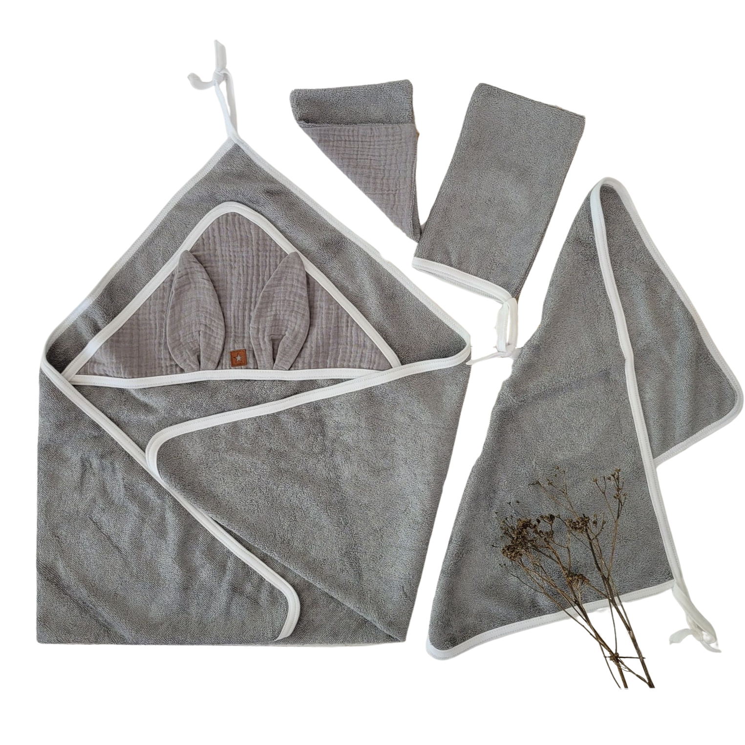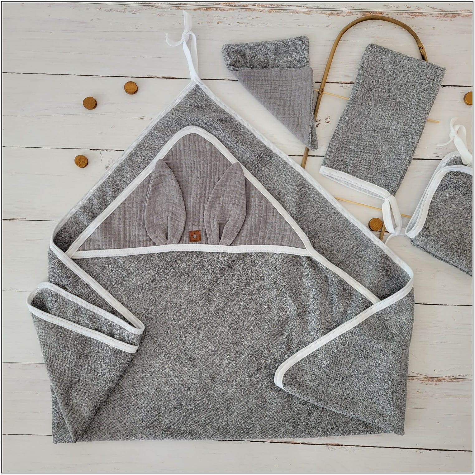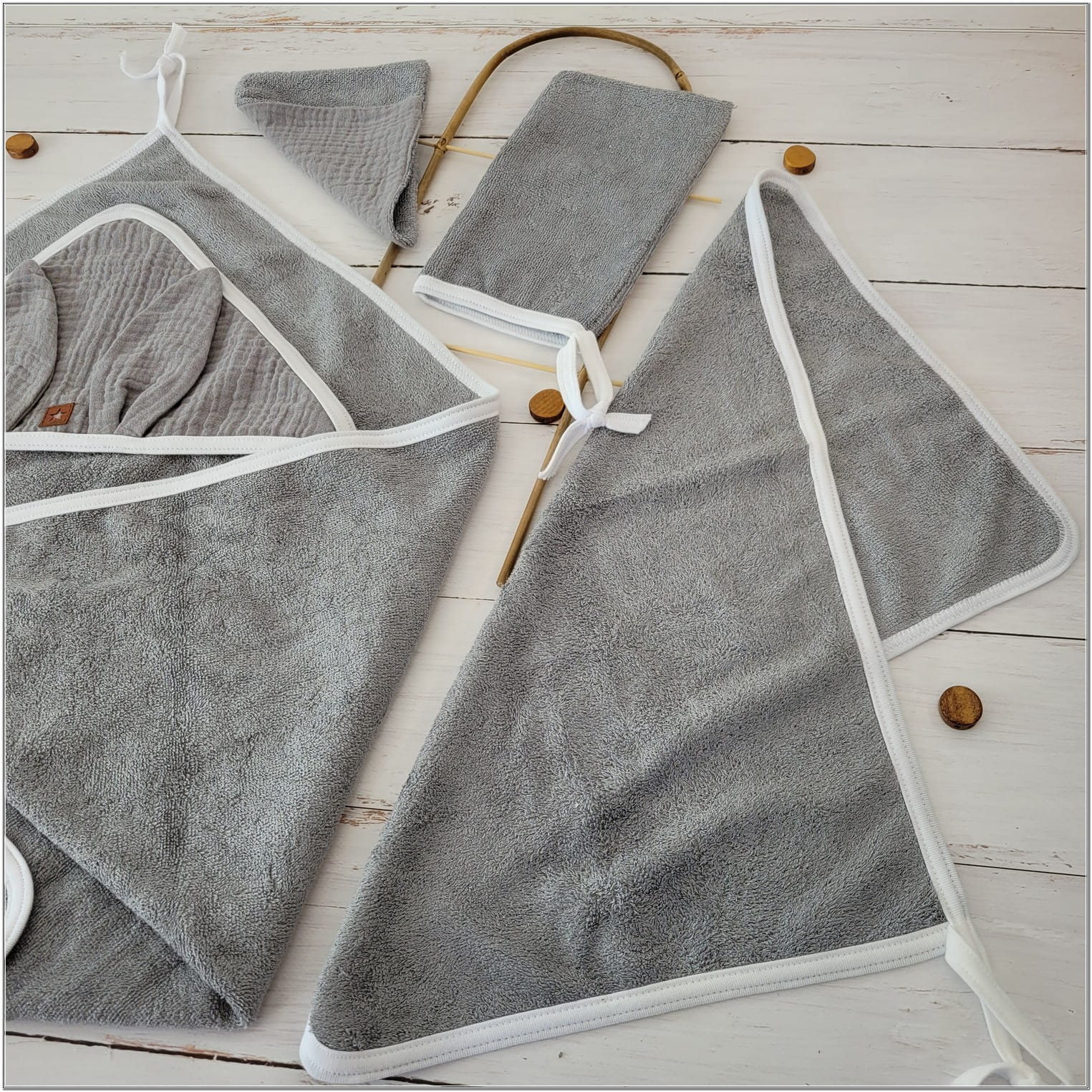 Bambusowy komplet kąpielowy dla niemowlaka: okrycie, ręczniczek oraz myjki - szary