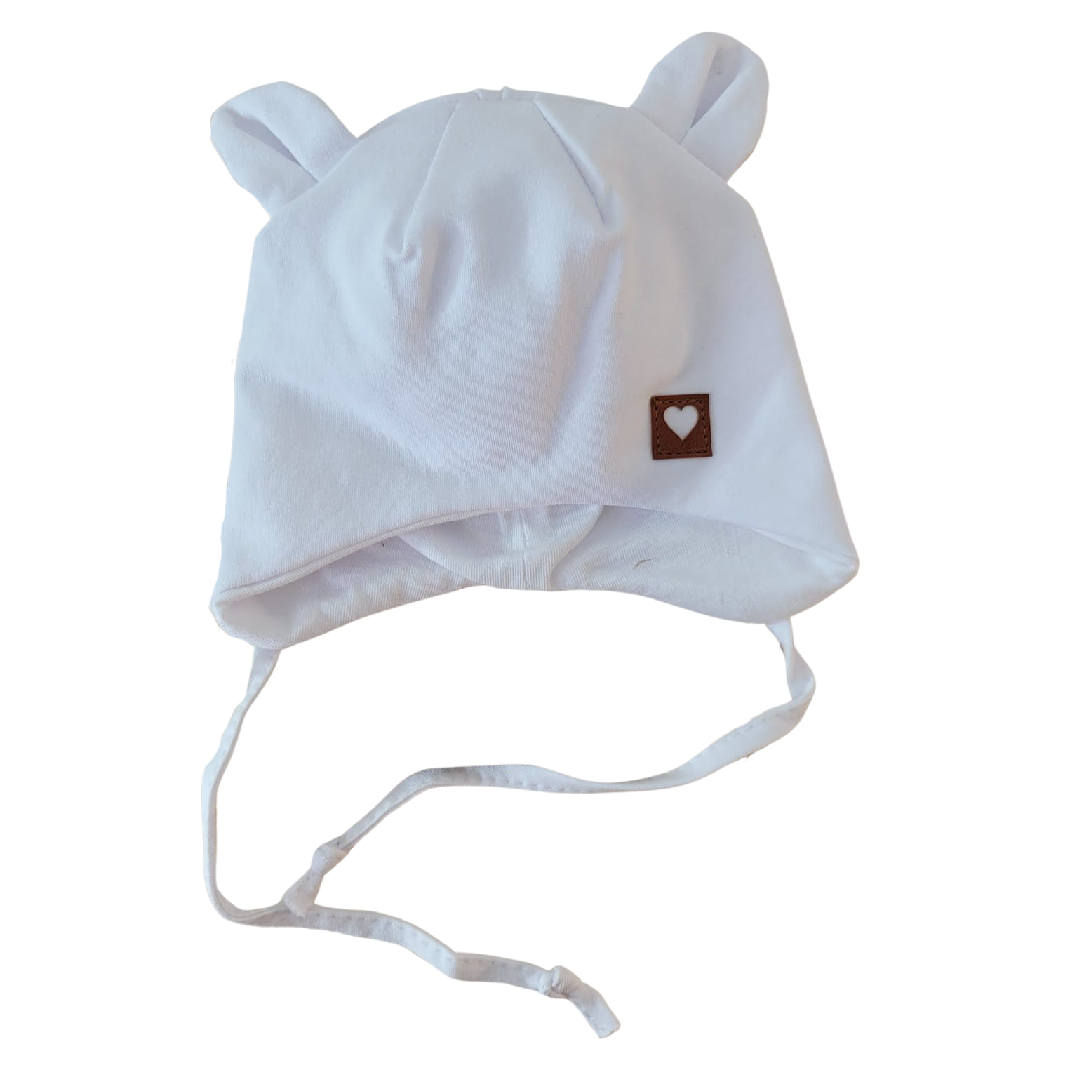 Bawełniana czapka wiązana z uszkami 56(38)-86(48) biała