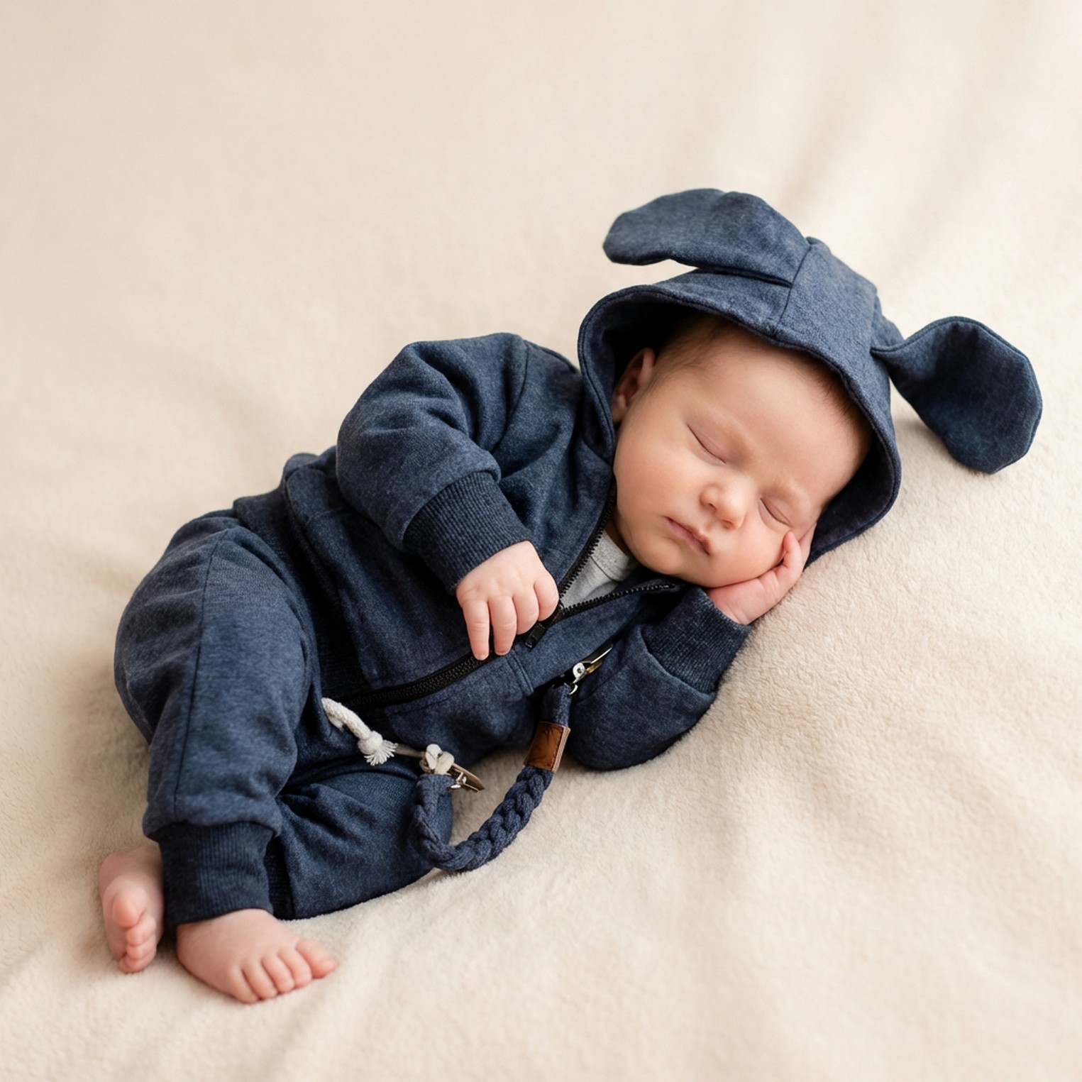 Bawełniany dresik dziecięcy 3 cz rozmiary 56- 86 jeansowy z uszami