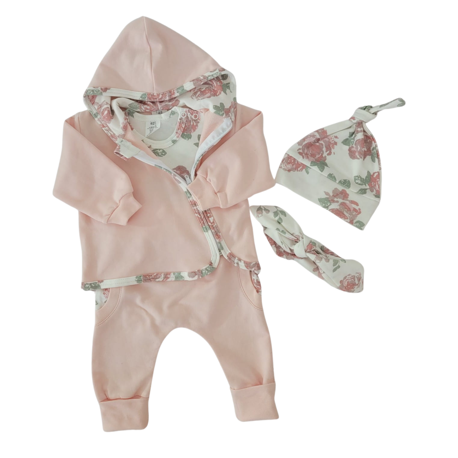 Bawełniany zestaw dresik dziecięcy 5 cz kwiaty ecru ostatnie sztuki 86