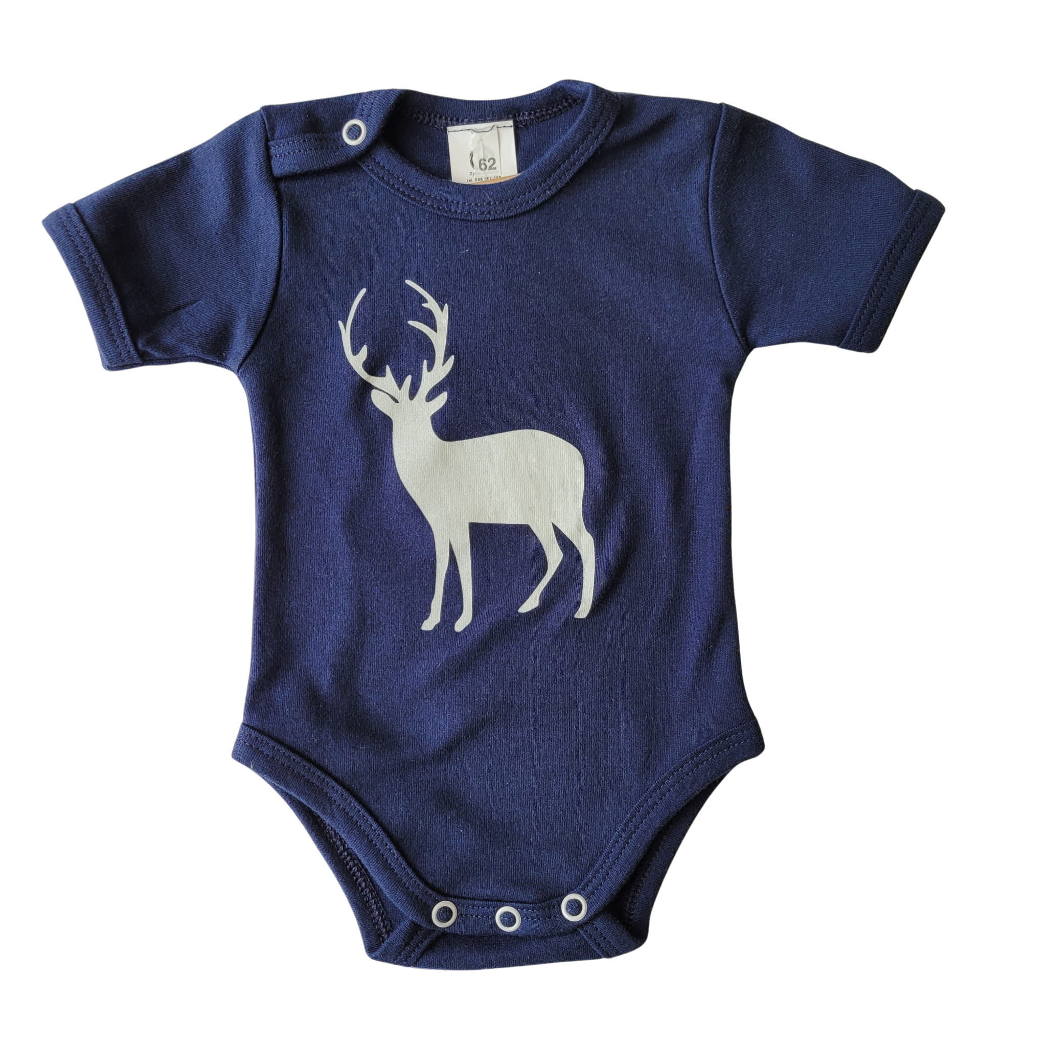 Body bawełniane granatowe z nadrukiem jelenia 56-86