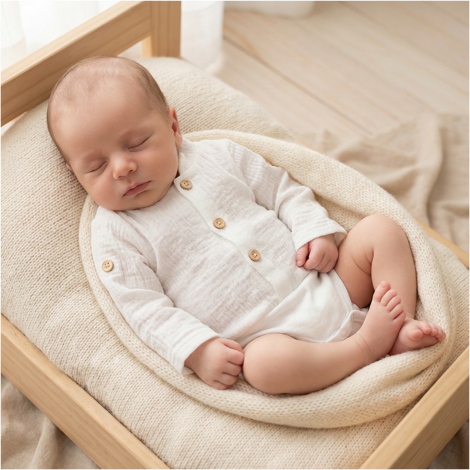 Koszulowe body z muślinu idealnie sprawdzi się w ciepłe miesiące. Body jest z długim rękawkiem, ale możemy podwinąć rękawek i zapiąć na guziczek. W ten sposób możemy sobie w dowolnej chwili regulować długość rękawka.