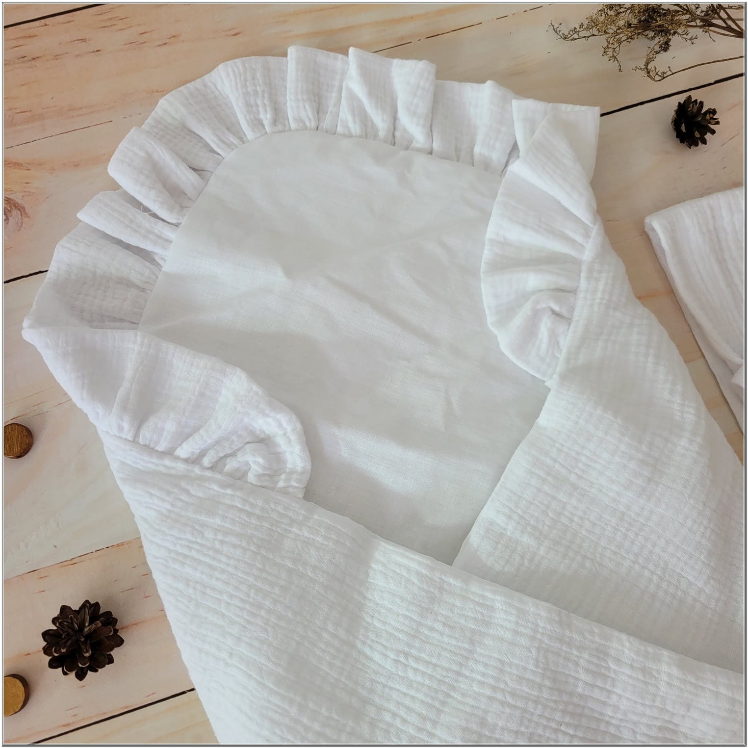 Becik jest wykonany z jednej strony z bawełny, z drugiej z delikatnego miękkiego materiału muślinu