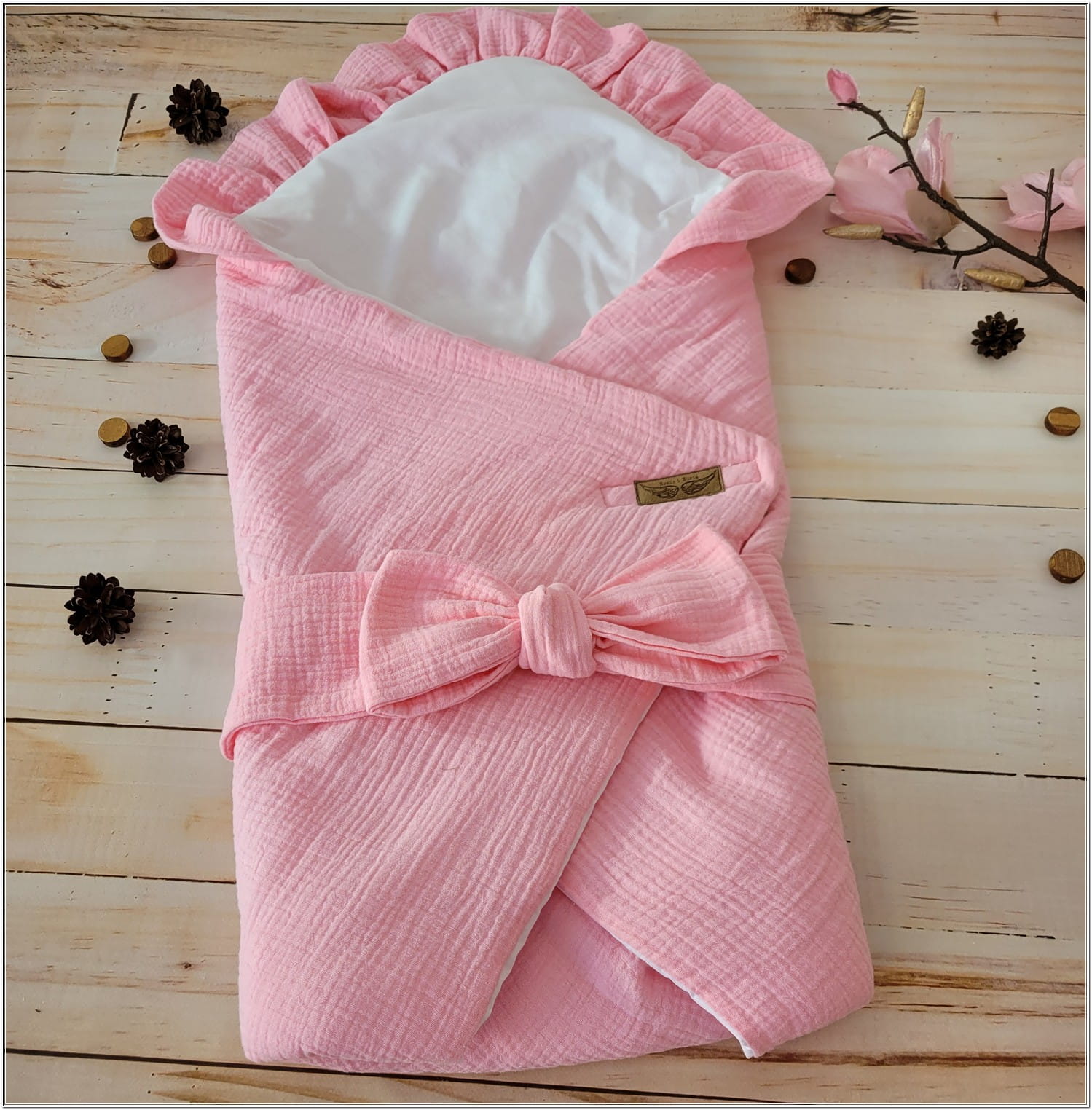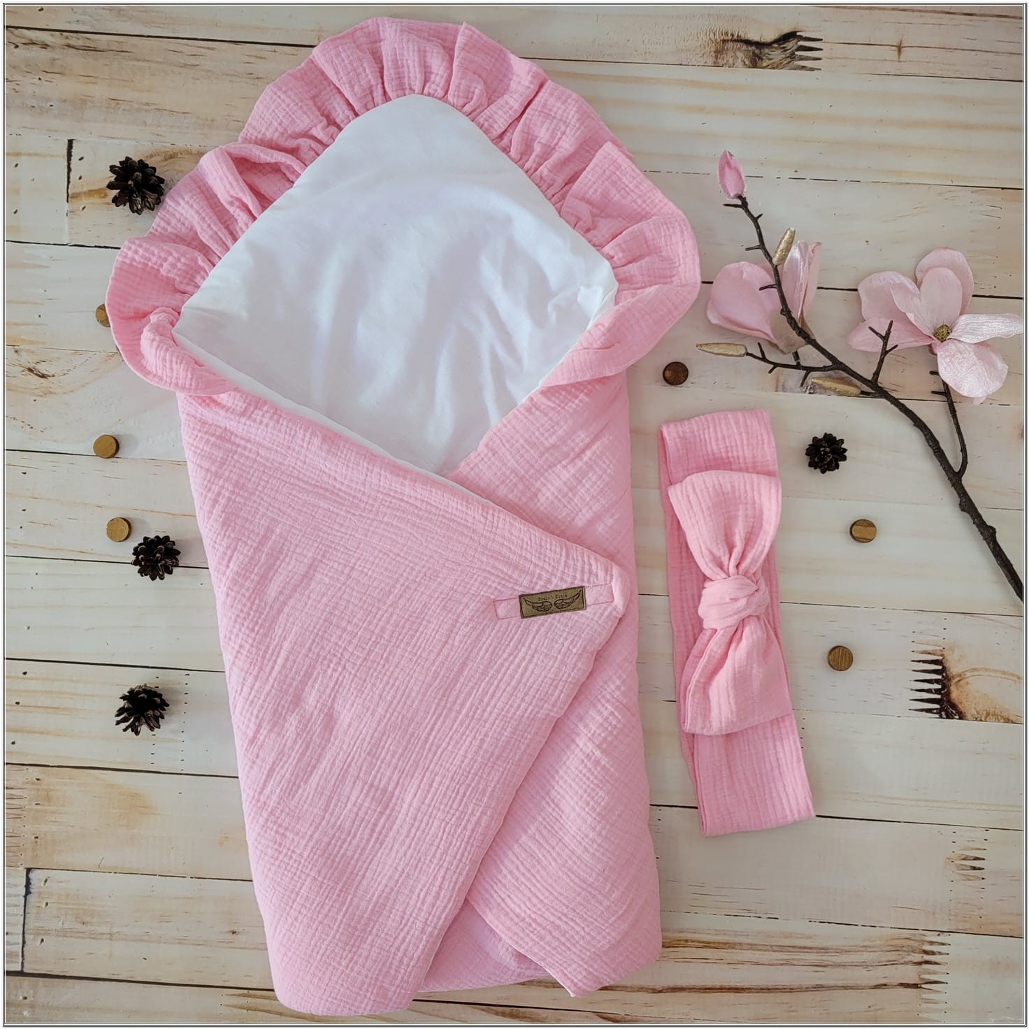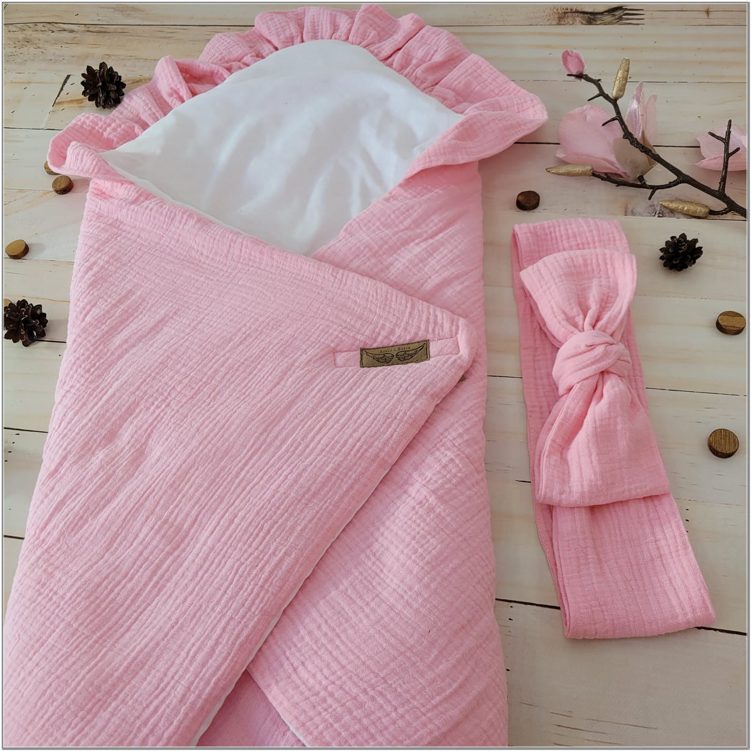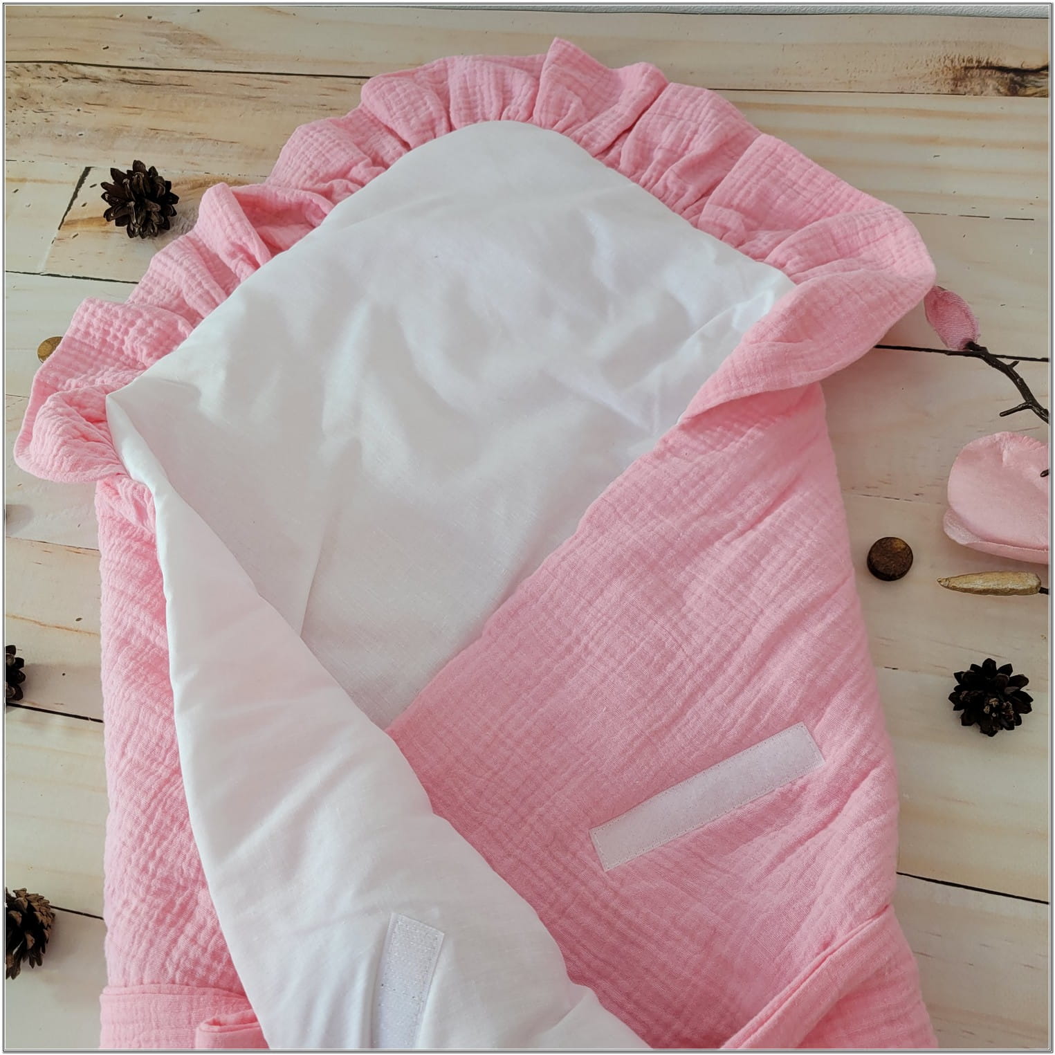Becik jest wykonany z jednej strony z bawełny, z drugiej z delikatnego miękkiego materiału muślinu
