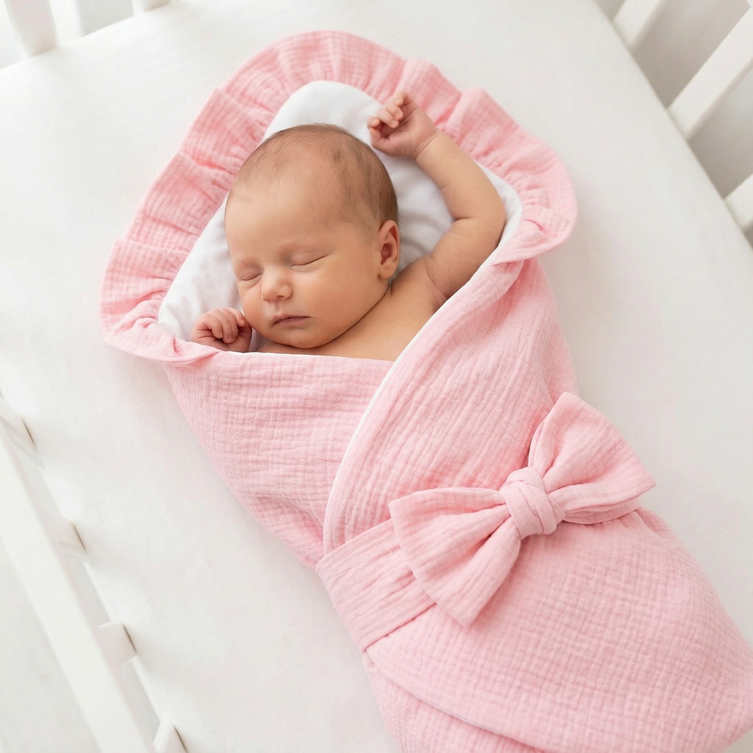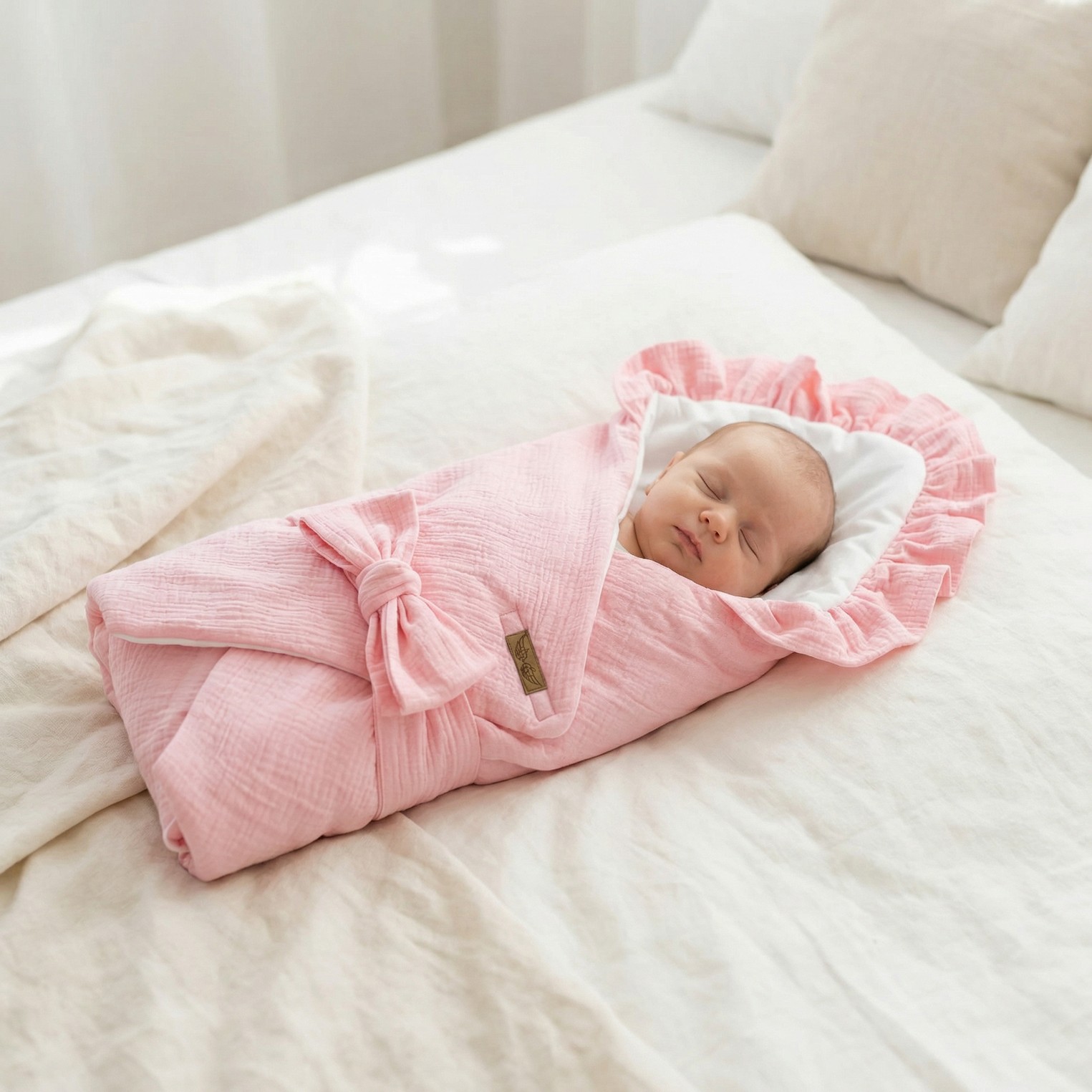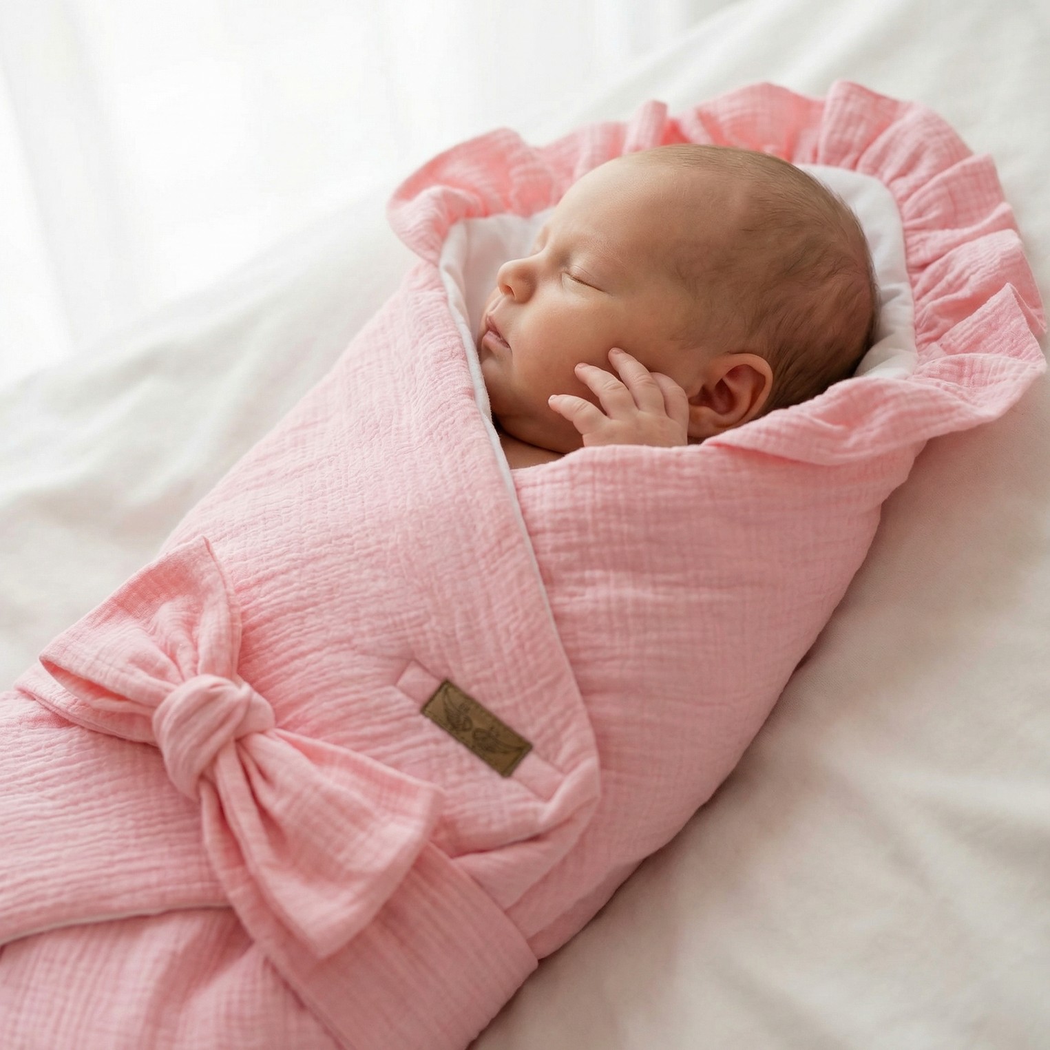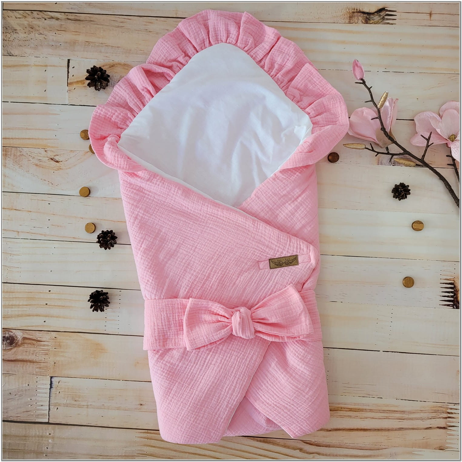 Becik jest wykonany z jednej strony z bawełny, z drugiej z delikatnego miękkiego materiału muślinu