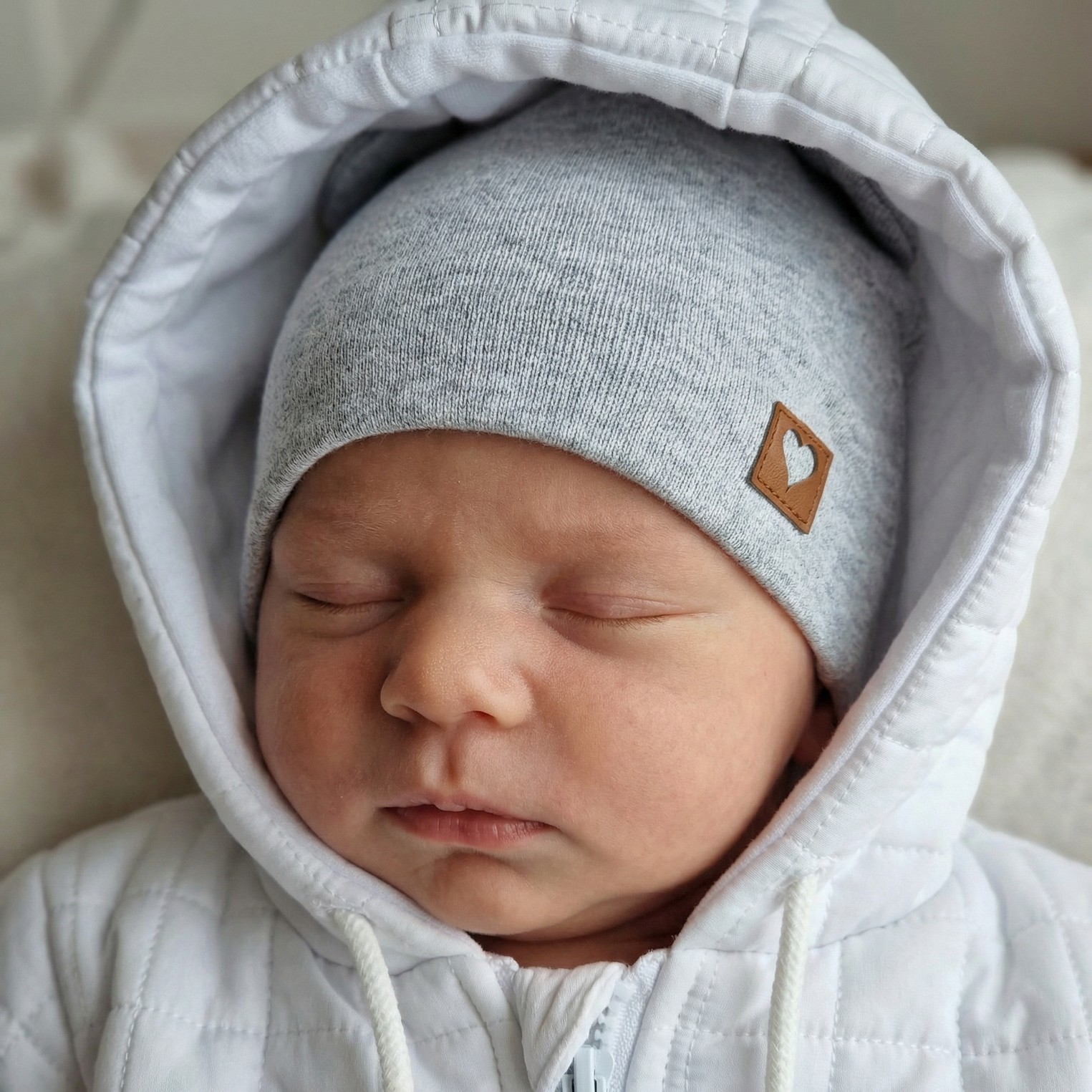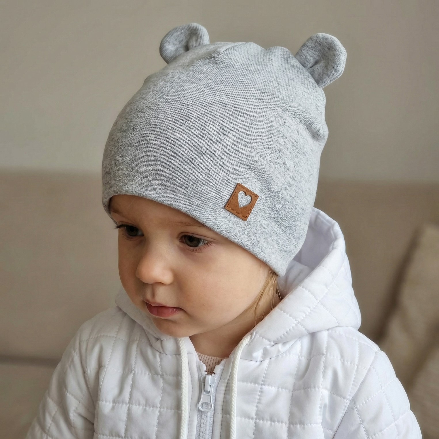 Czapka niemowlęca podwójna z uszkami elastyczna 56-98 szara