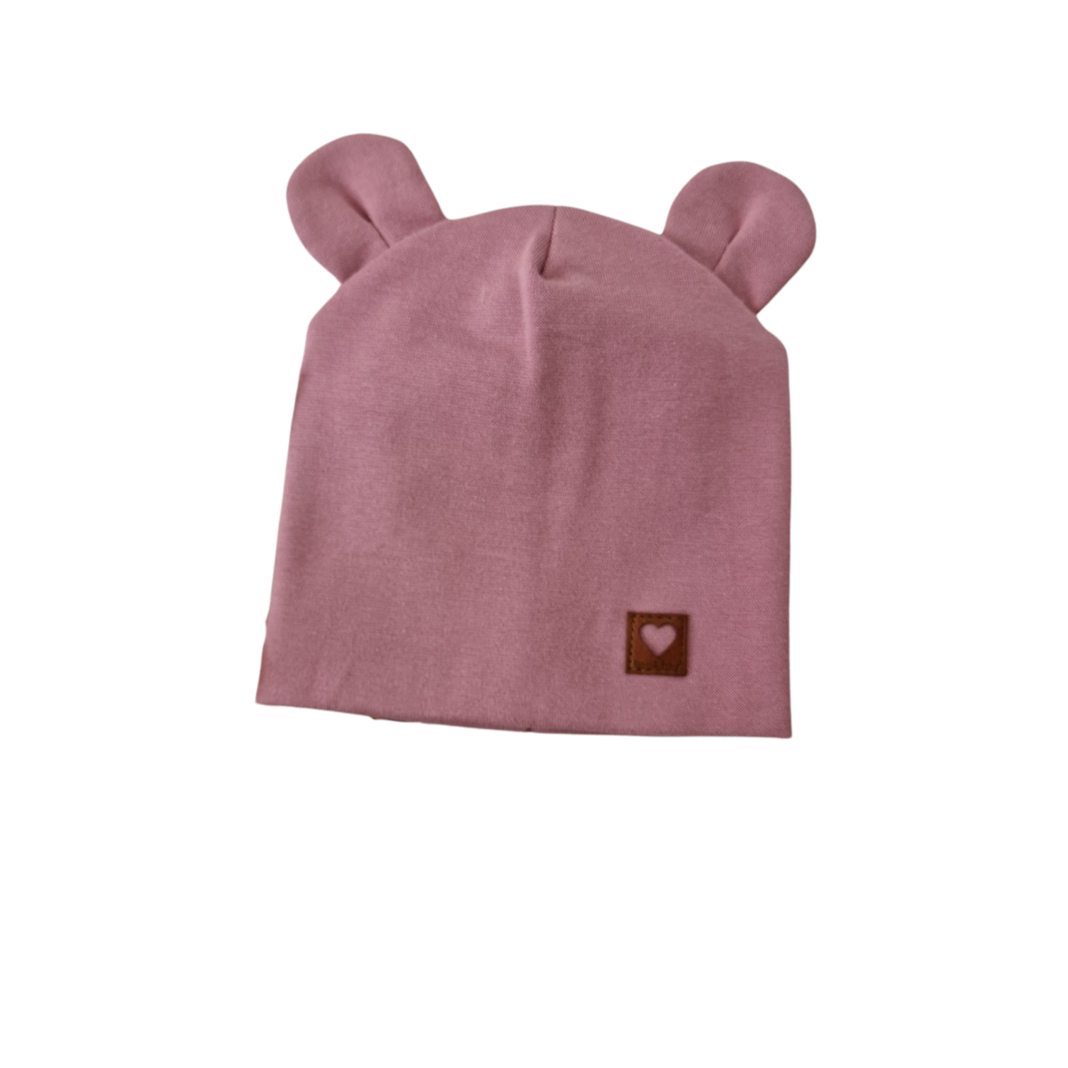 Czapka niemowlęca podwójna z uszkami elastyczna 56-98 wrzosowa