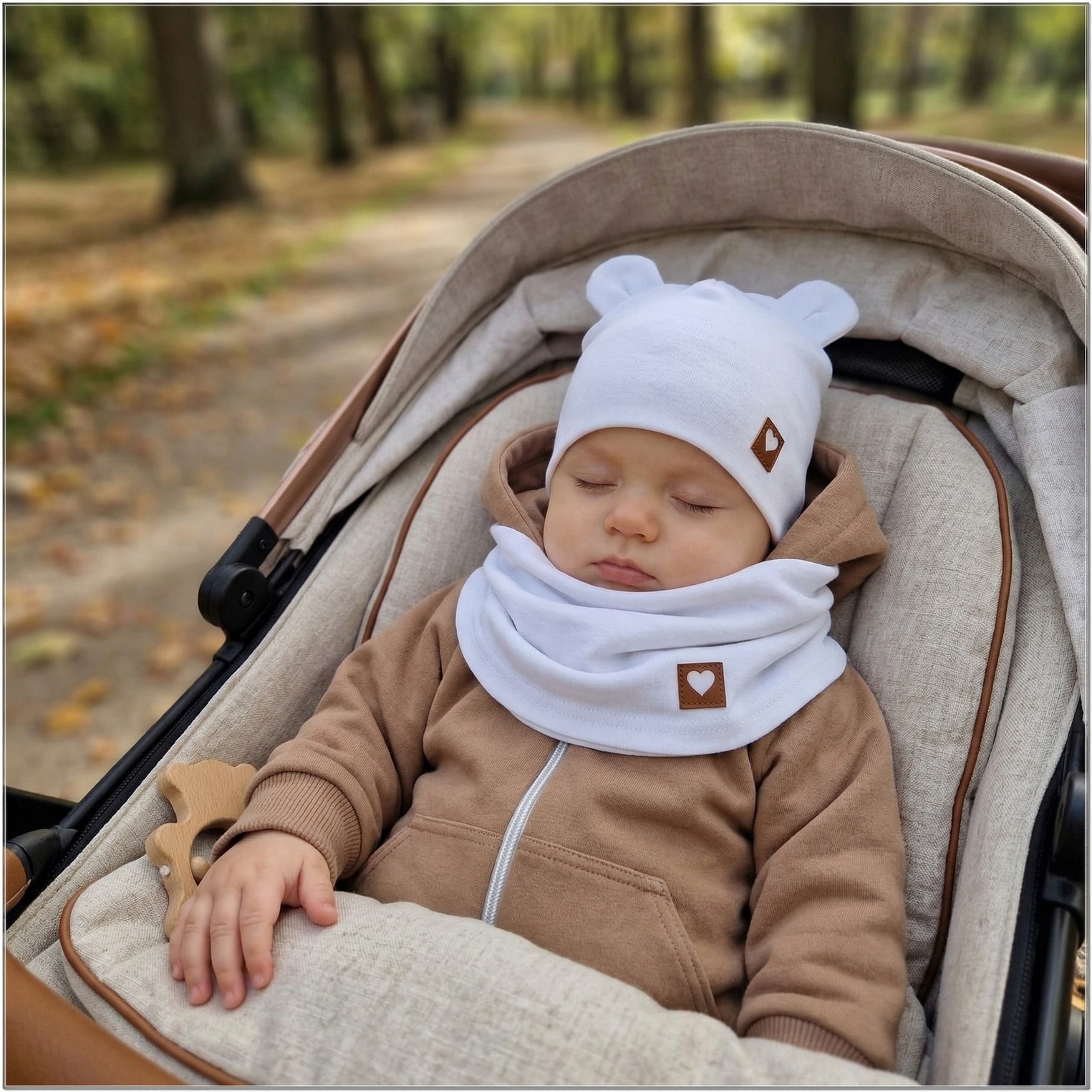 Czapka podwójna niemowlęca z uszkami+komin rozmiar 56-98 biała
