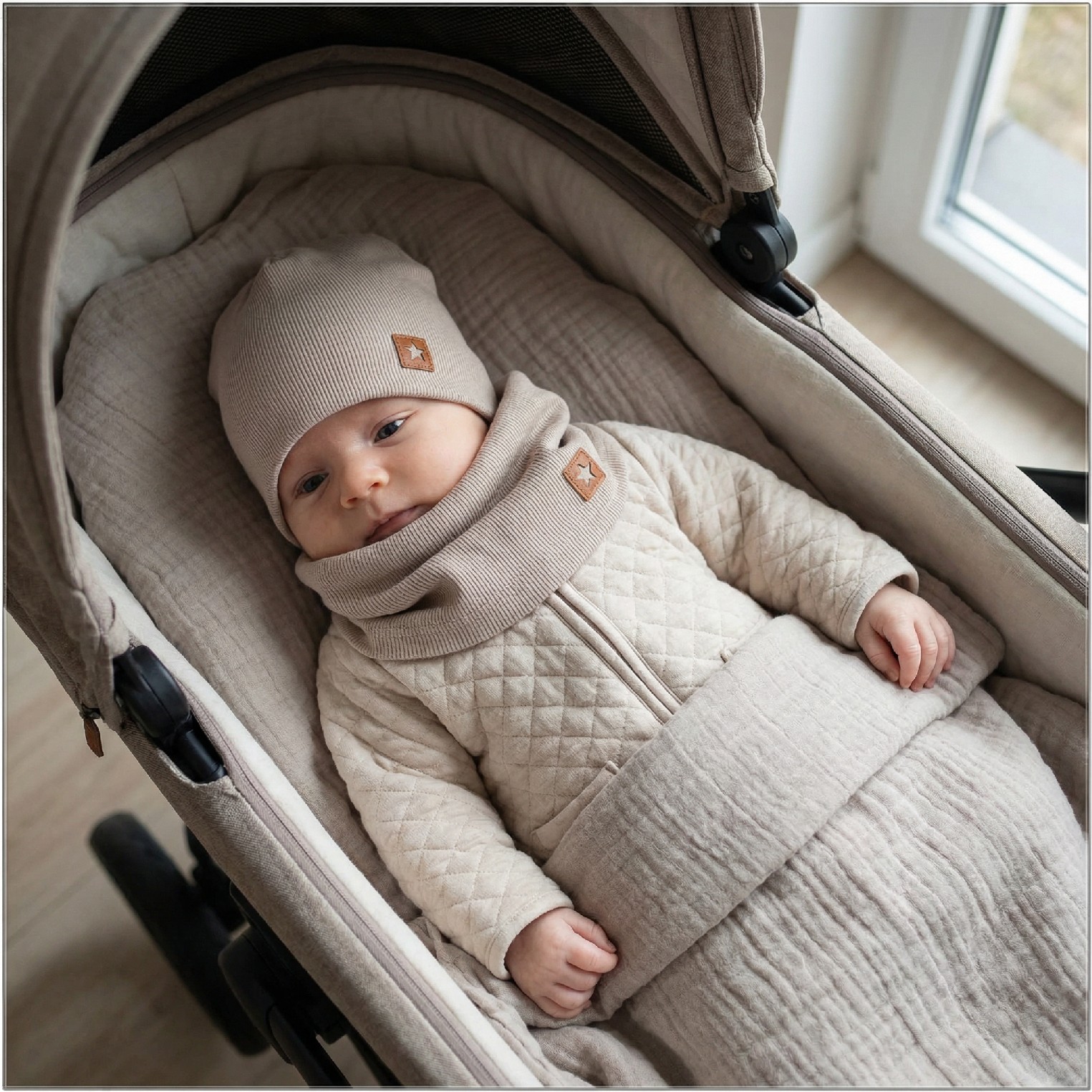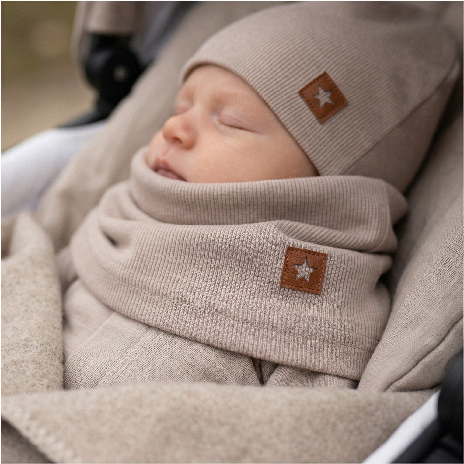 Komplet niemowlęcy: czapka podwójna prążkowana elastyczna + komin