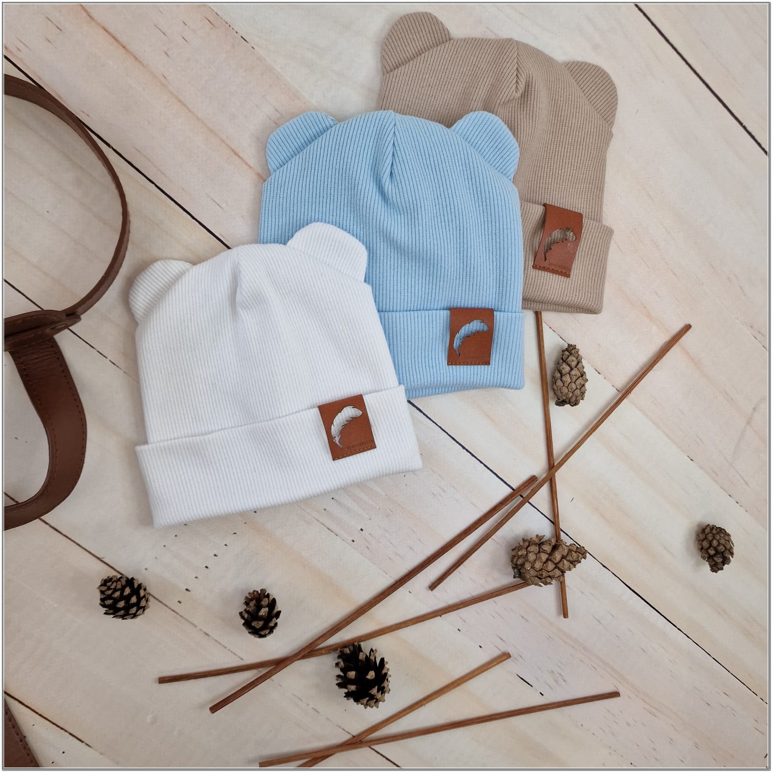 Czapka podwójna prążkowana niemowlęca z uszkami rozmiar 56-98 biała