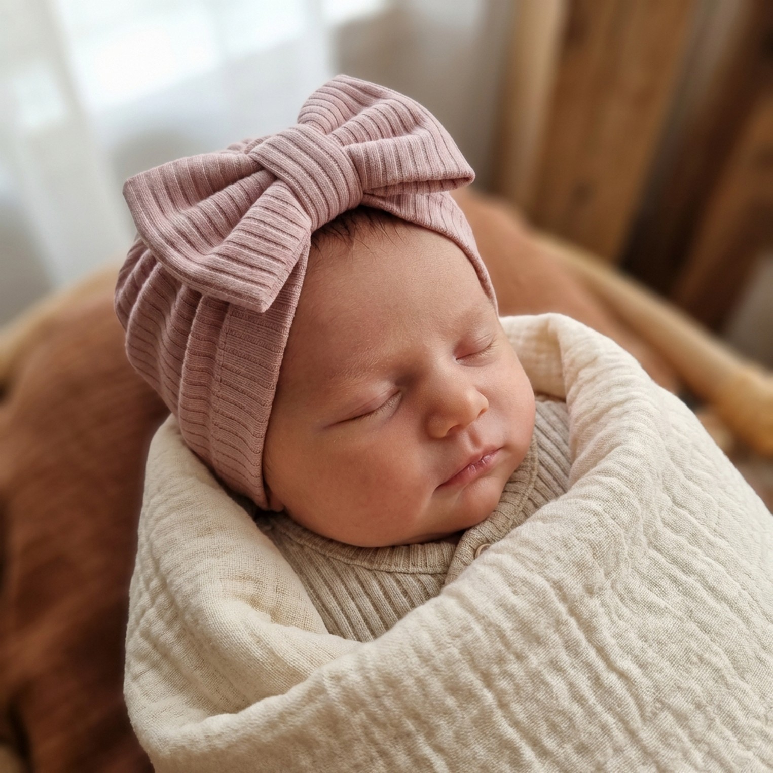 Czapka prążkowana z kokardą rozmiar 0-6miesięcy 6-12miesięcy 1-3lat brudny róż