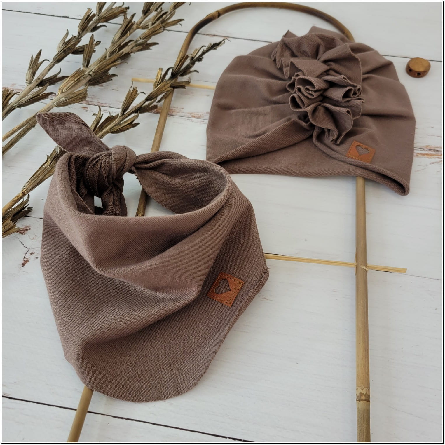 Czapka turban + chustka rozmiar 0-6miesięcy 6-12miesięcy 1-3lat czekoladowy