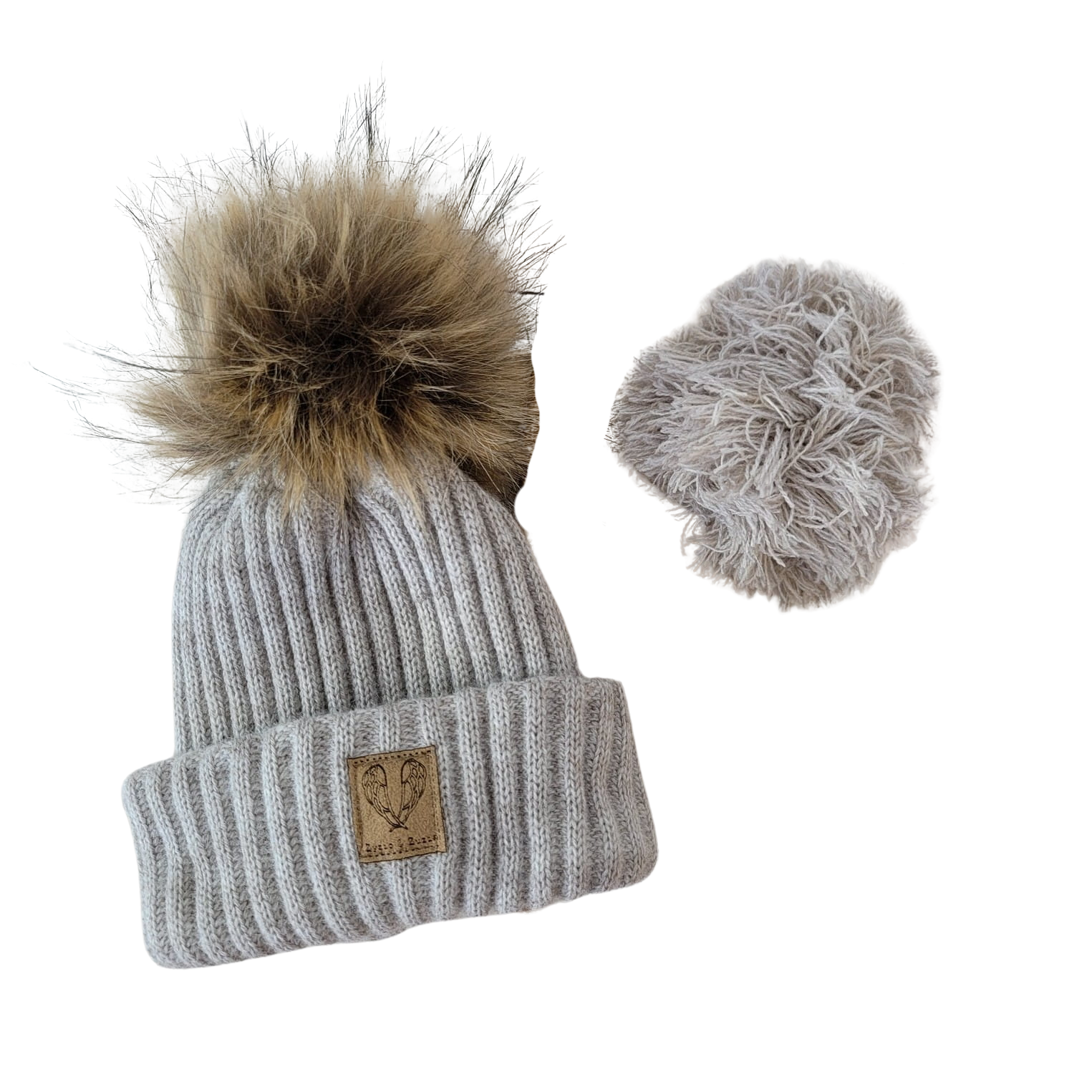 Do czapki w komplecie dołączone są 2 pompony. Jeden futerkowy, drugi piaskowy w kolorze czapki. Pompony można dowolnie dopinać od czapki. Czapka jest wyjątkowa i można zakładać ją do różnych stylizacji.