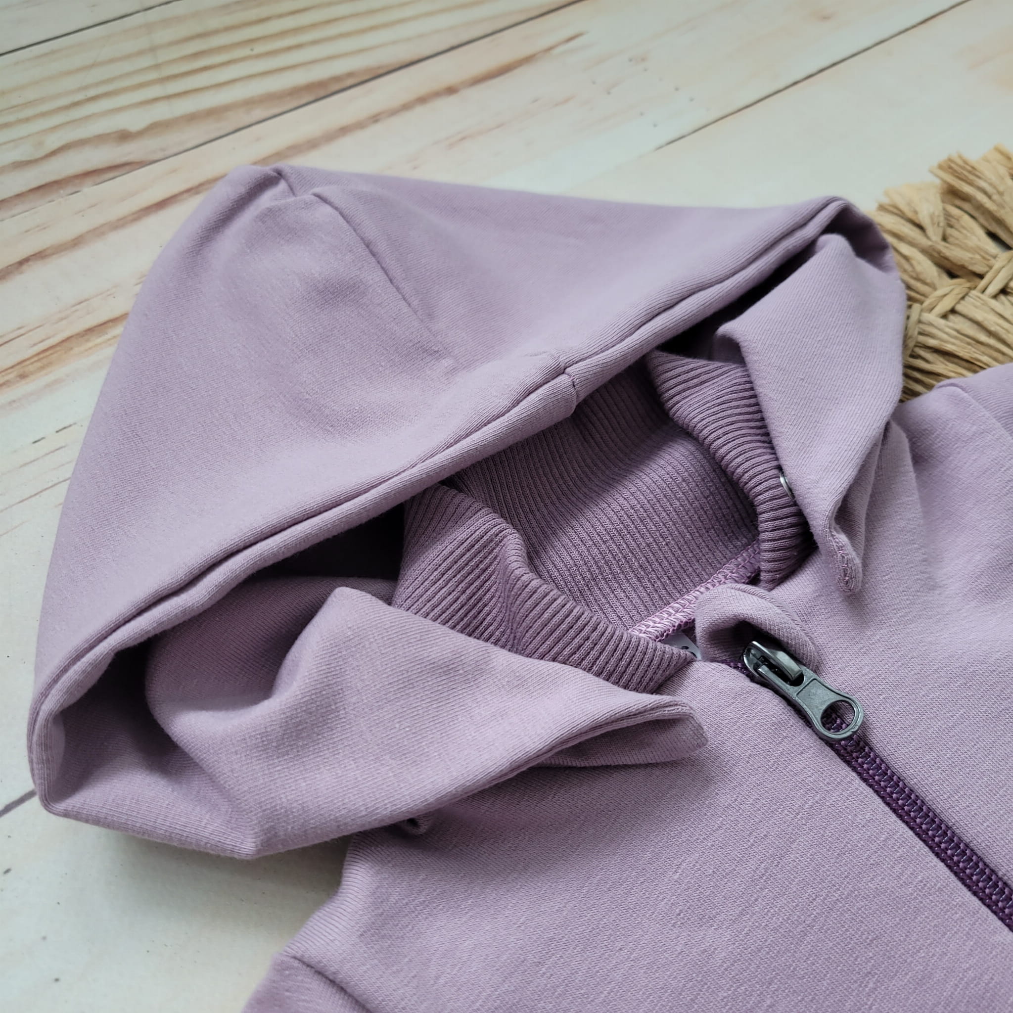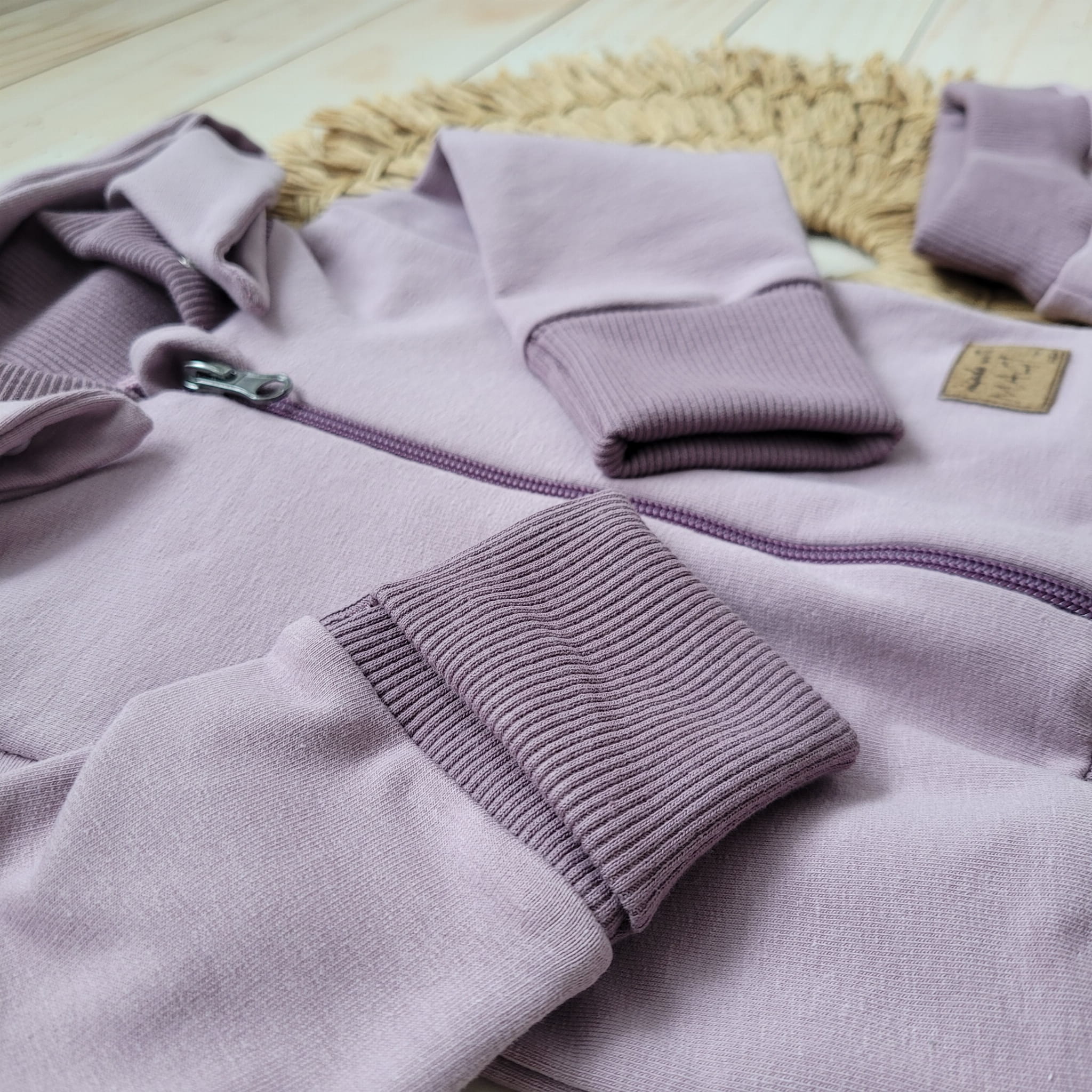 Bluza rozpinana na zamek, dodatkowo posiada wywinięcie na rękawku. Gdy na spacerze wieje wiatr i dziecku marzną rączki, możemy szybkciutko osłonić je zakładką.