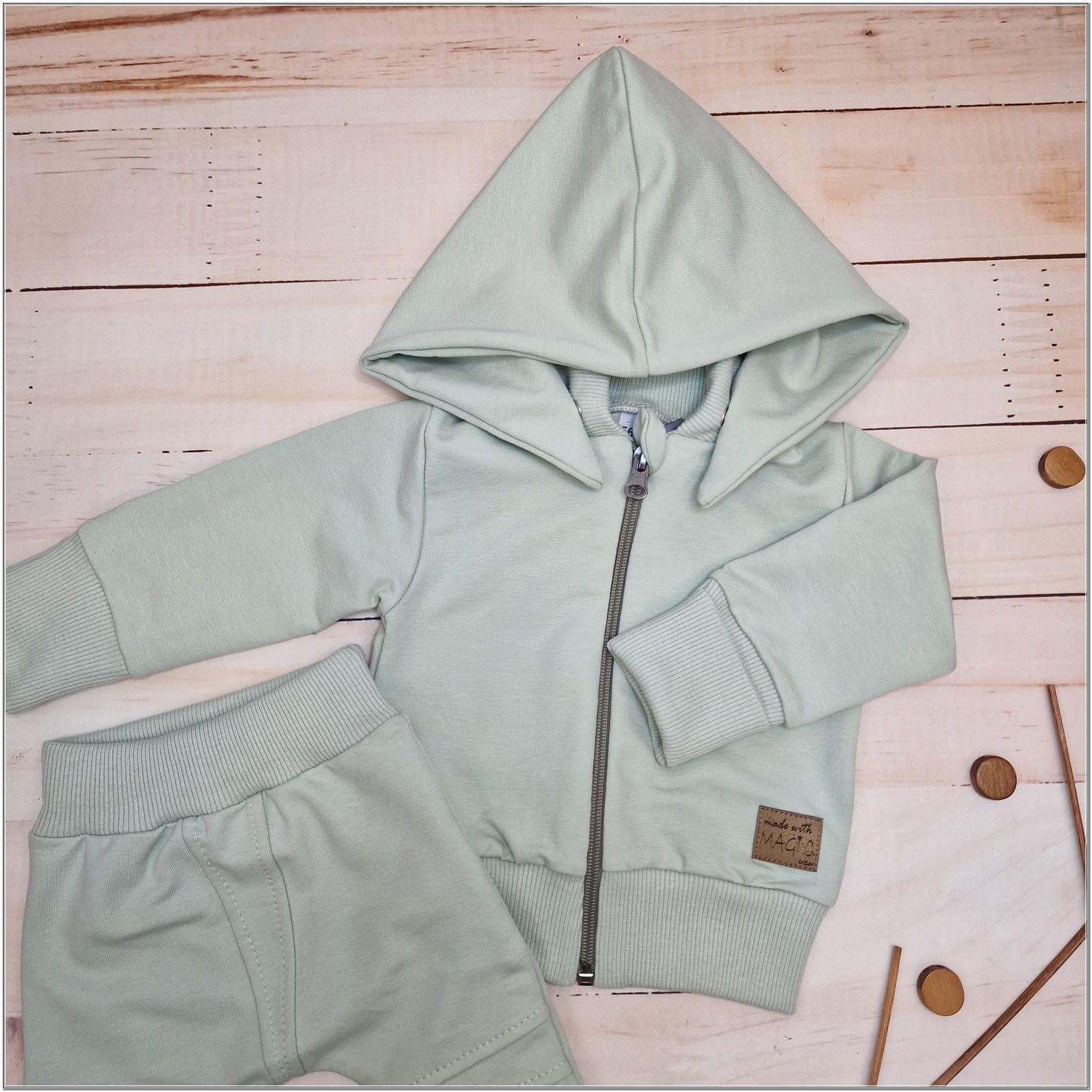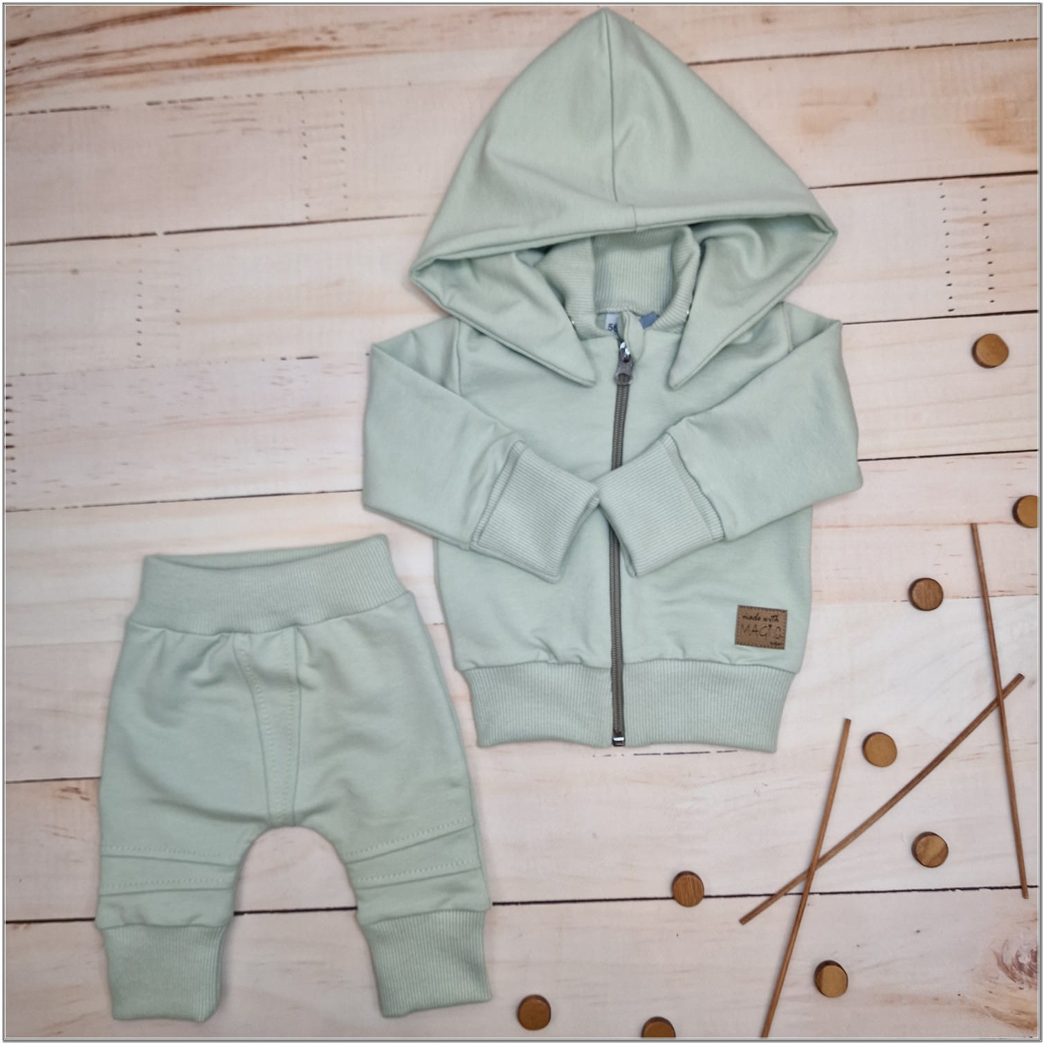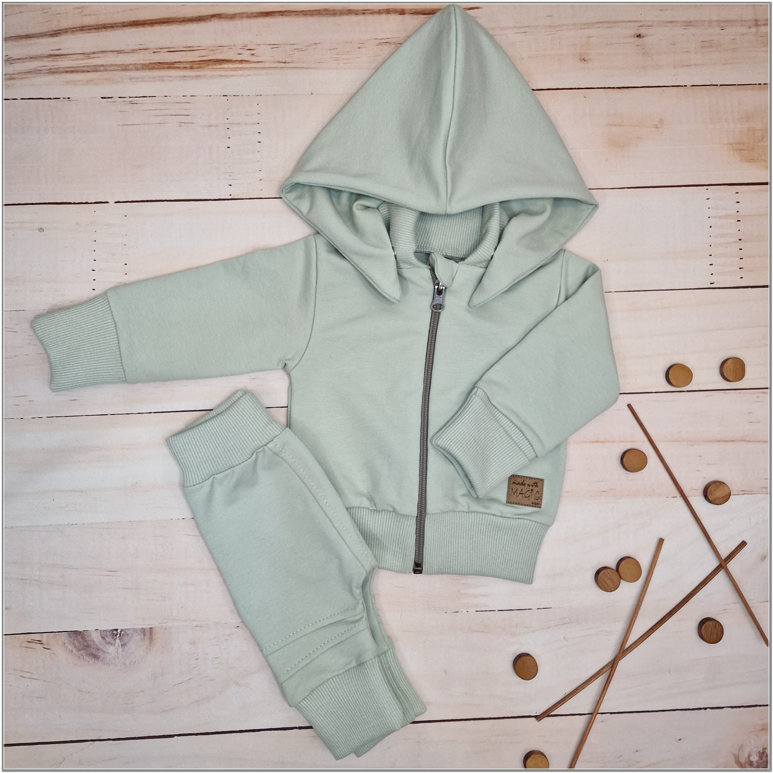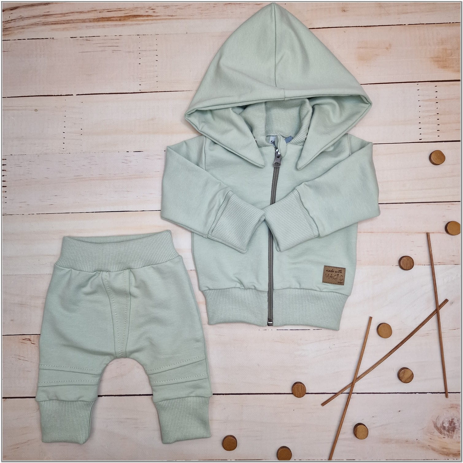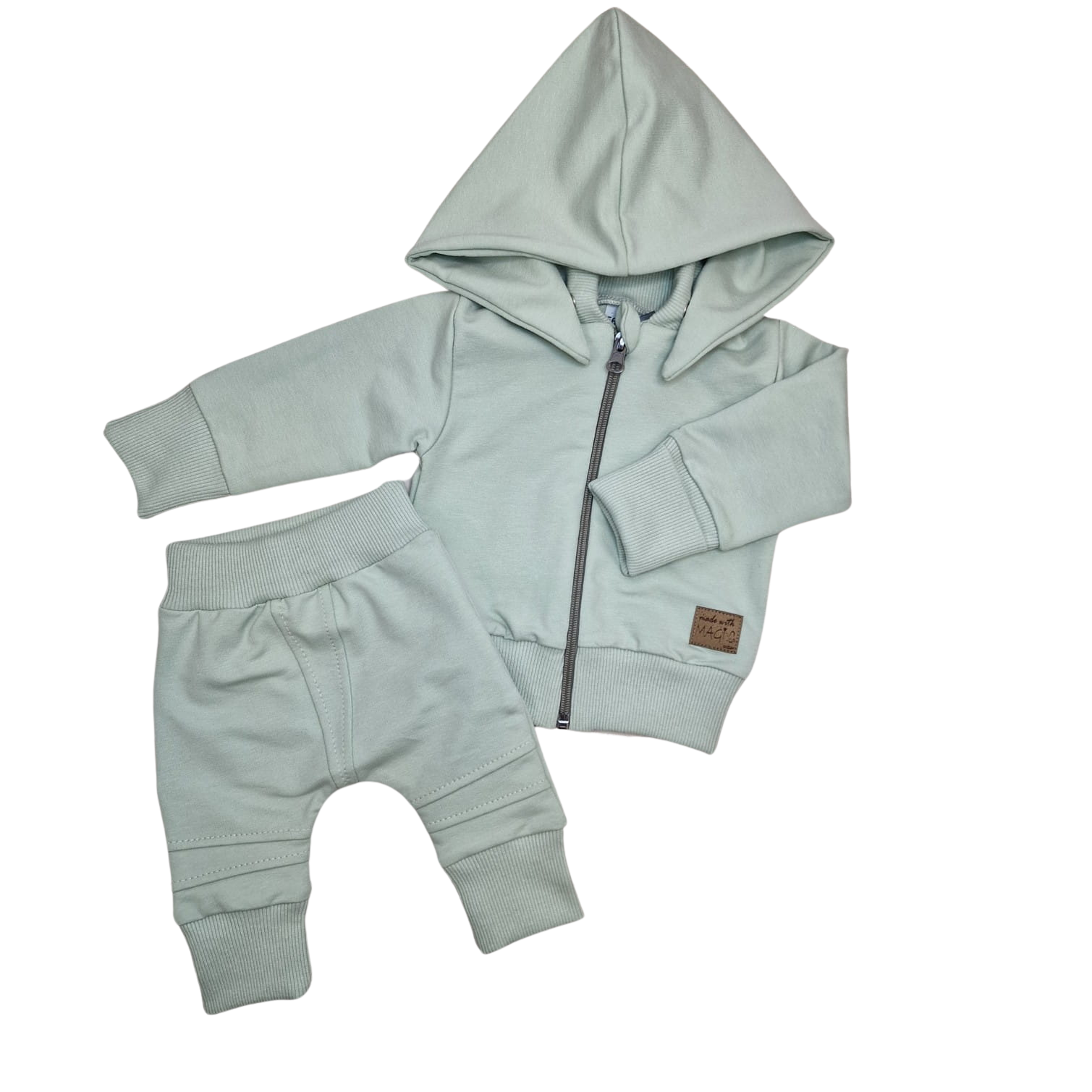 Dres niemowlęcy 2 cz bawełniany z odpinanym kapturem 56-86 minty green
