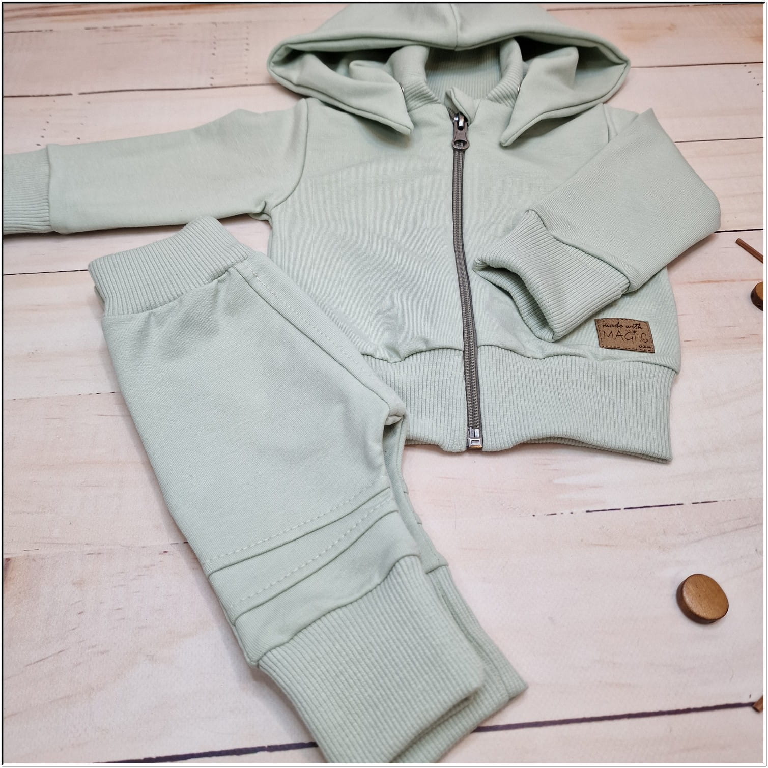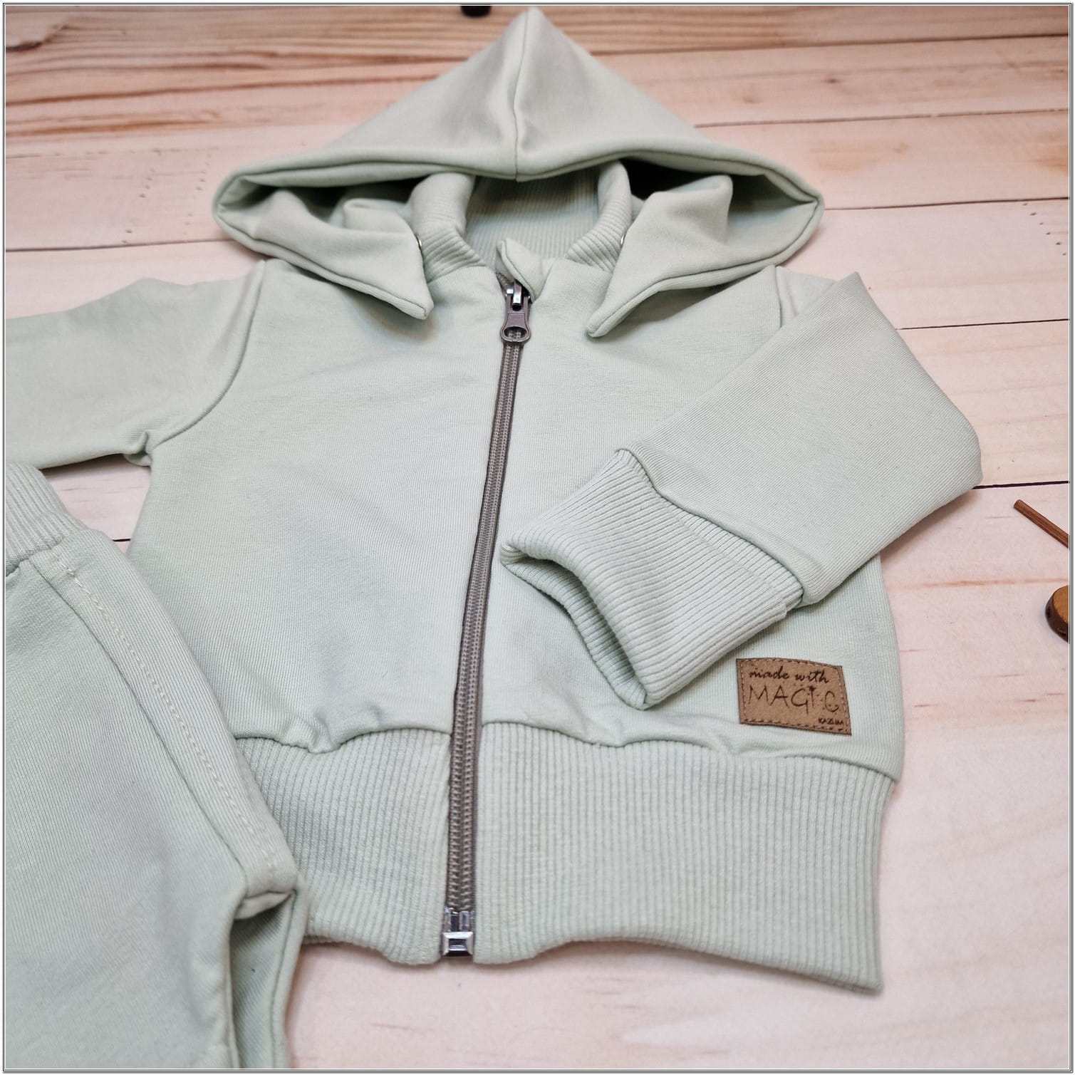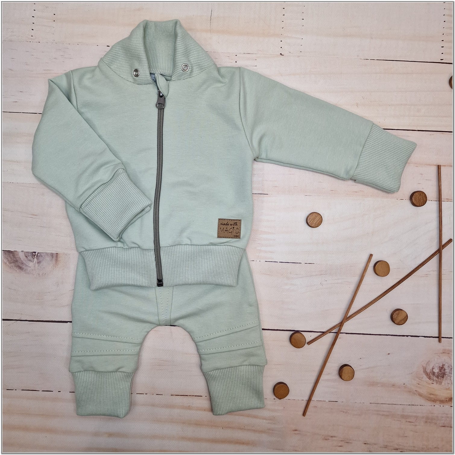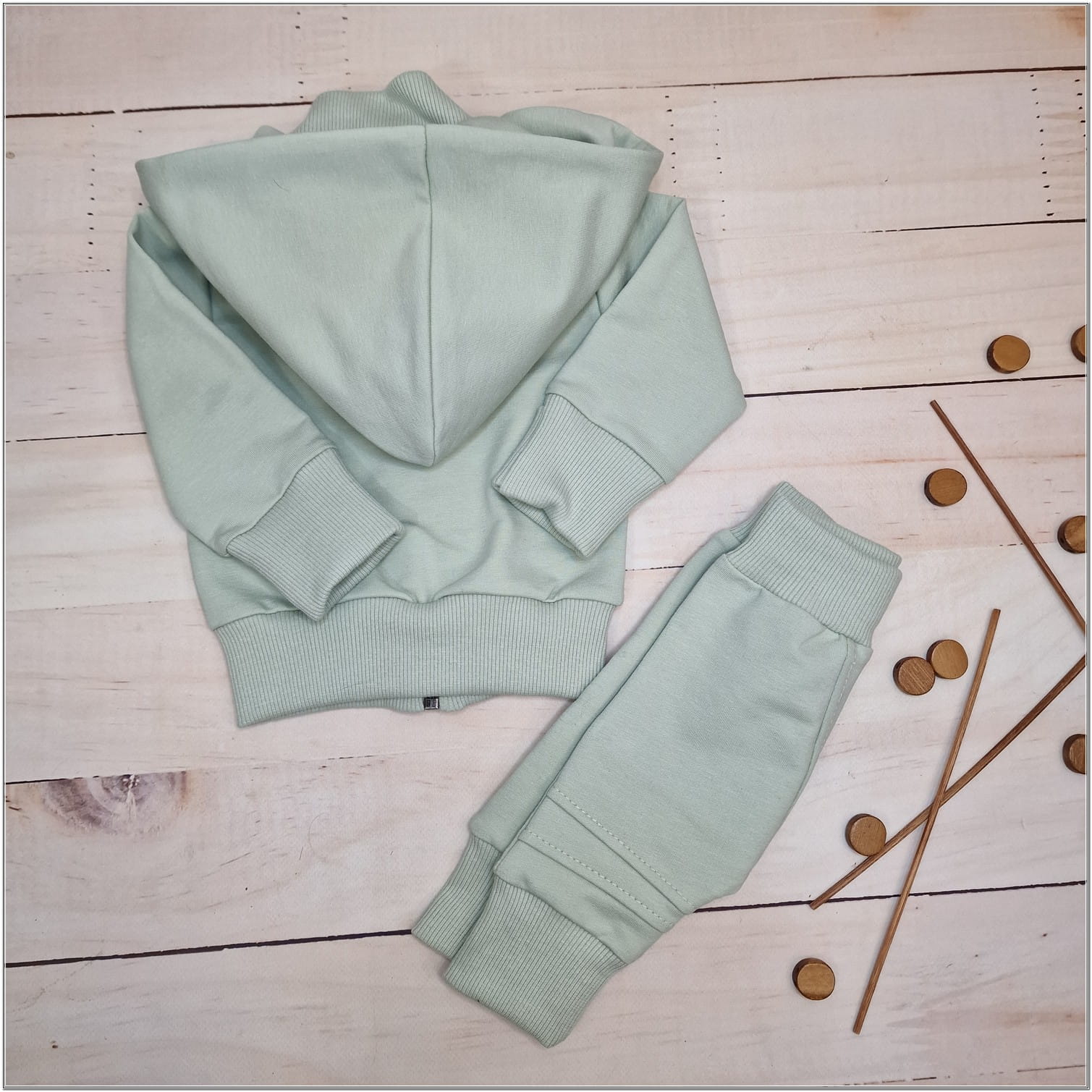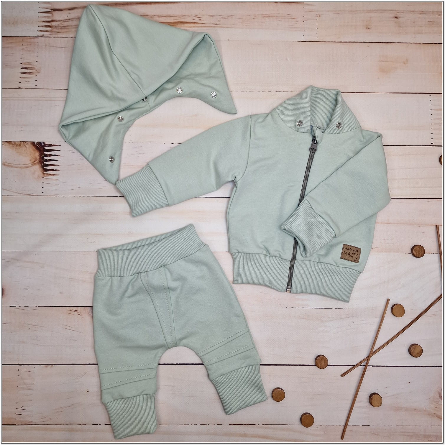 Dres niemowlęcy 2 cz bawełniany z odpinanym kapturem 56-86 minty green