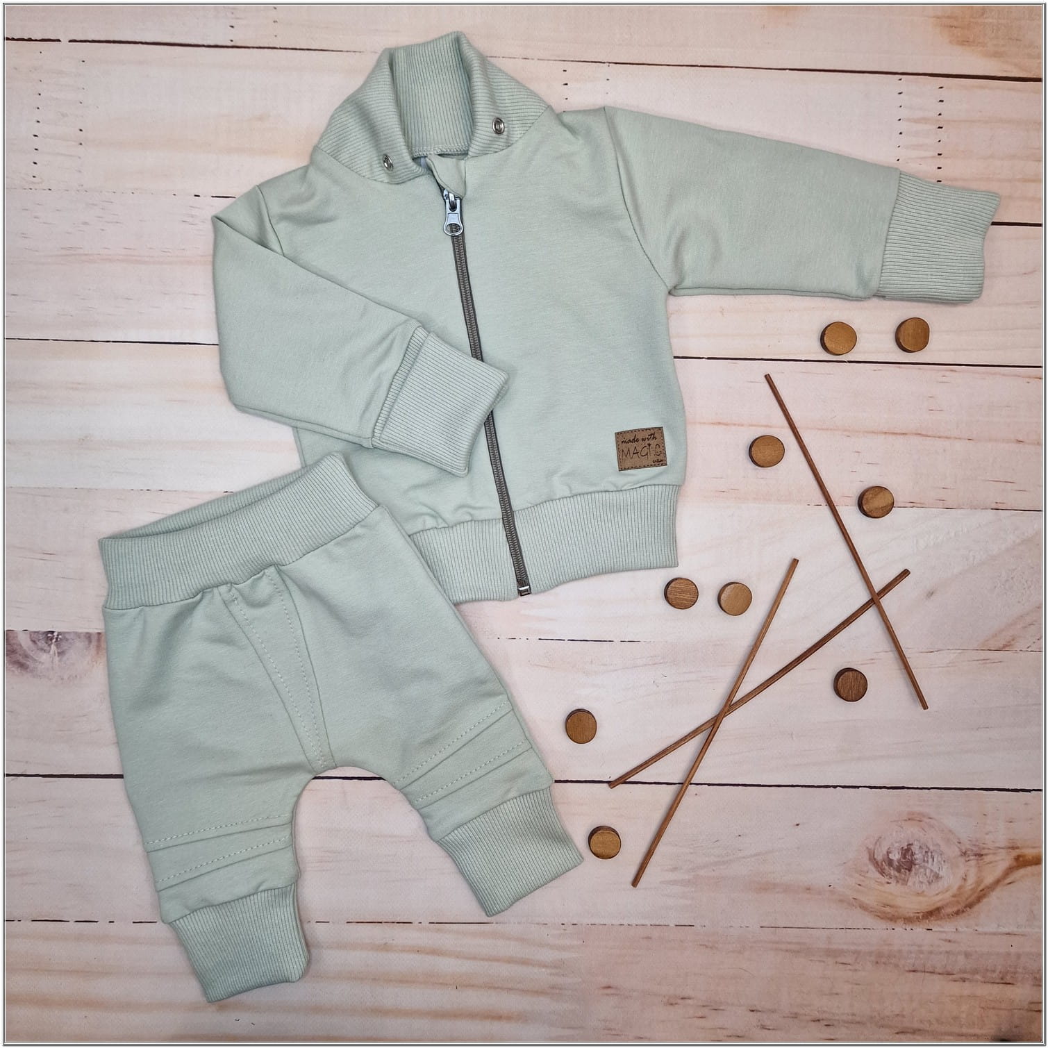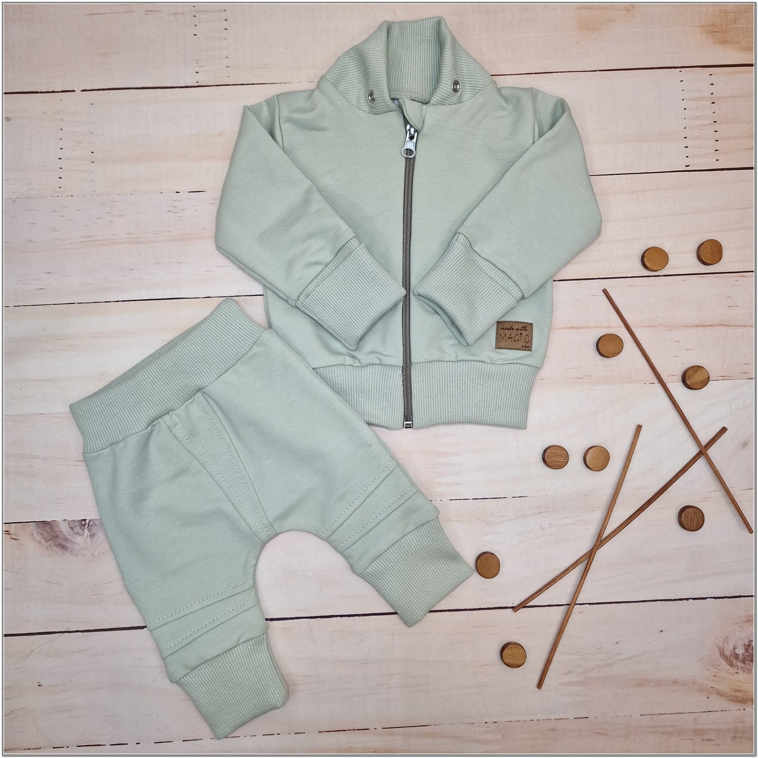 Bawełniany niemowlęcy 2-częściowy dresik w rozmiarach 56,62,68,74,80,86 rosnący z dzieckiem