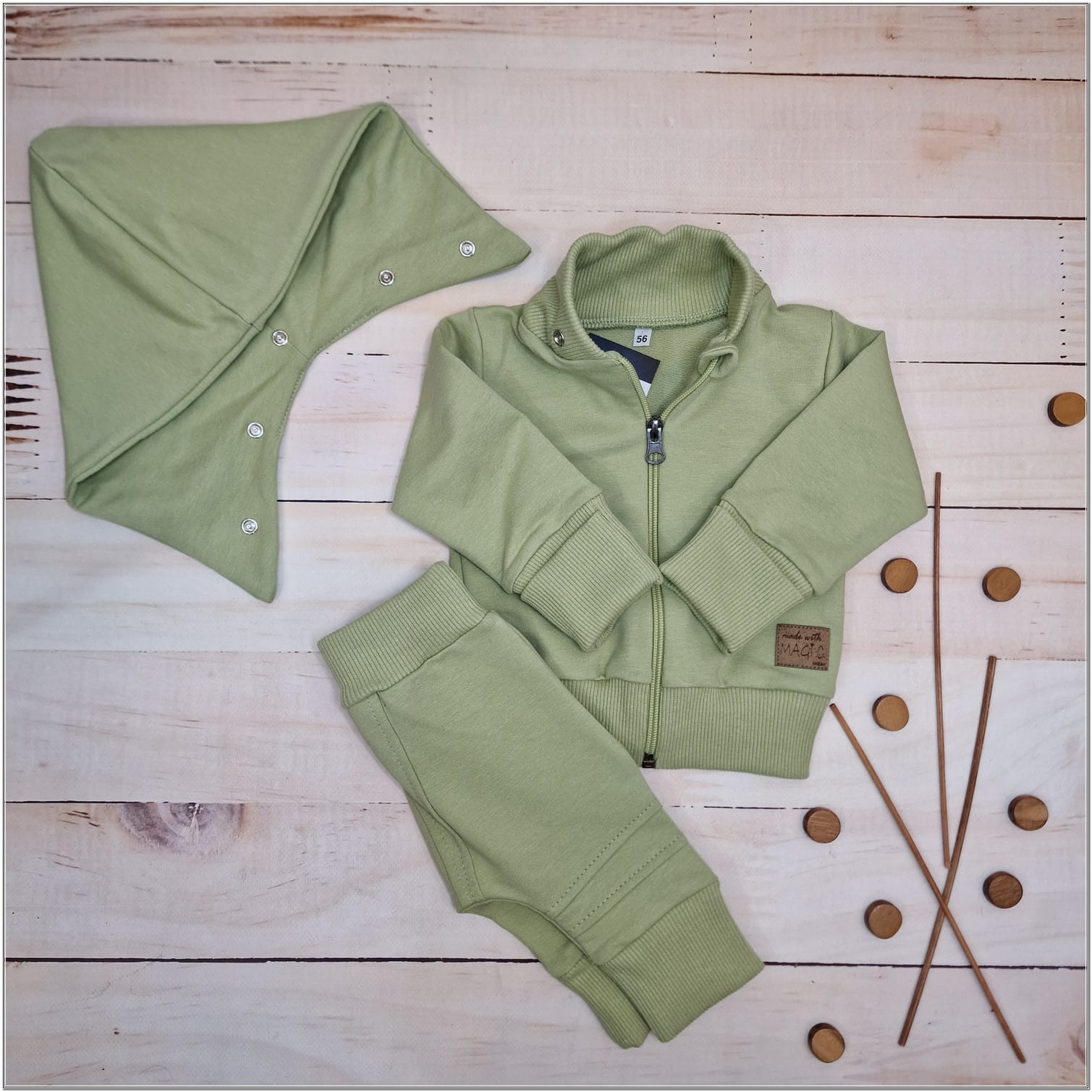 Dres niemowlęcy 2 cz bawełniany z odpinanym kapturem 56-86 olive green