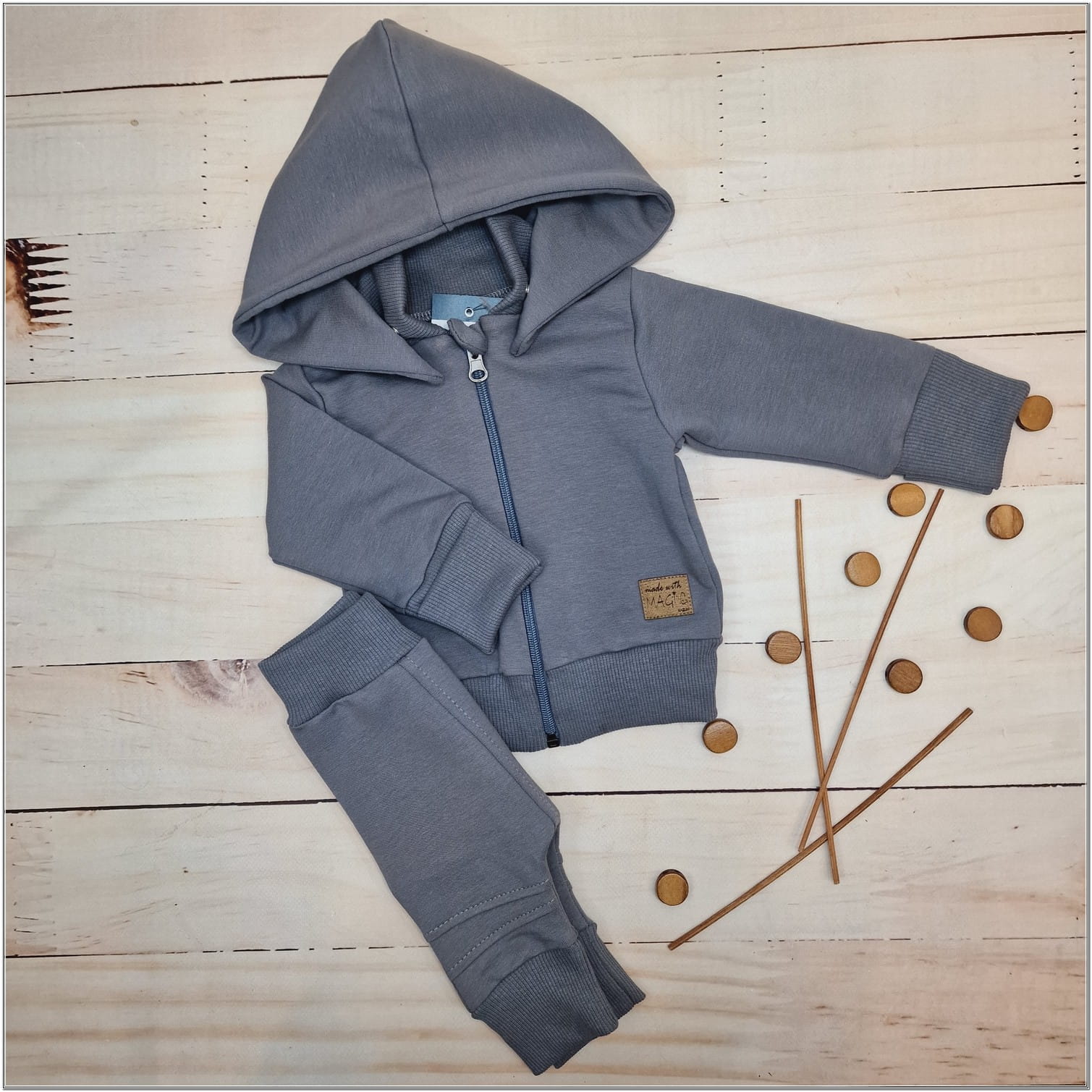 Komplet dresowy idealnie nadaje się na cały rok, ma wydłużone ściągacze, dzięki czemu rośnie wraz z dzieckiem:)