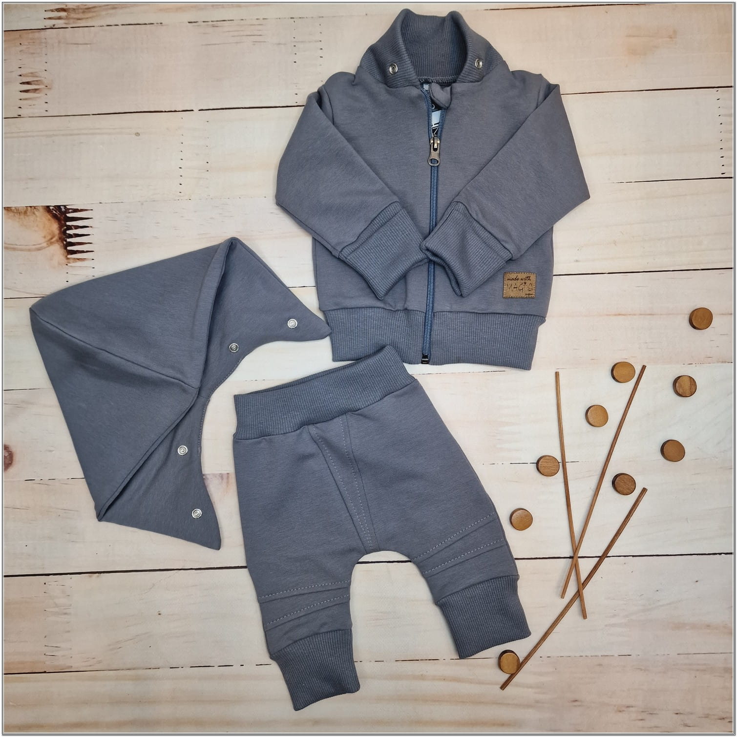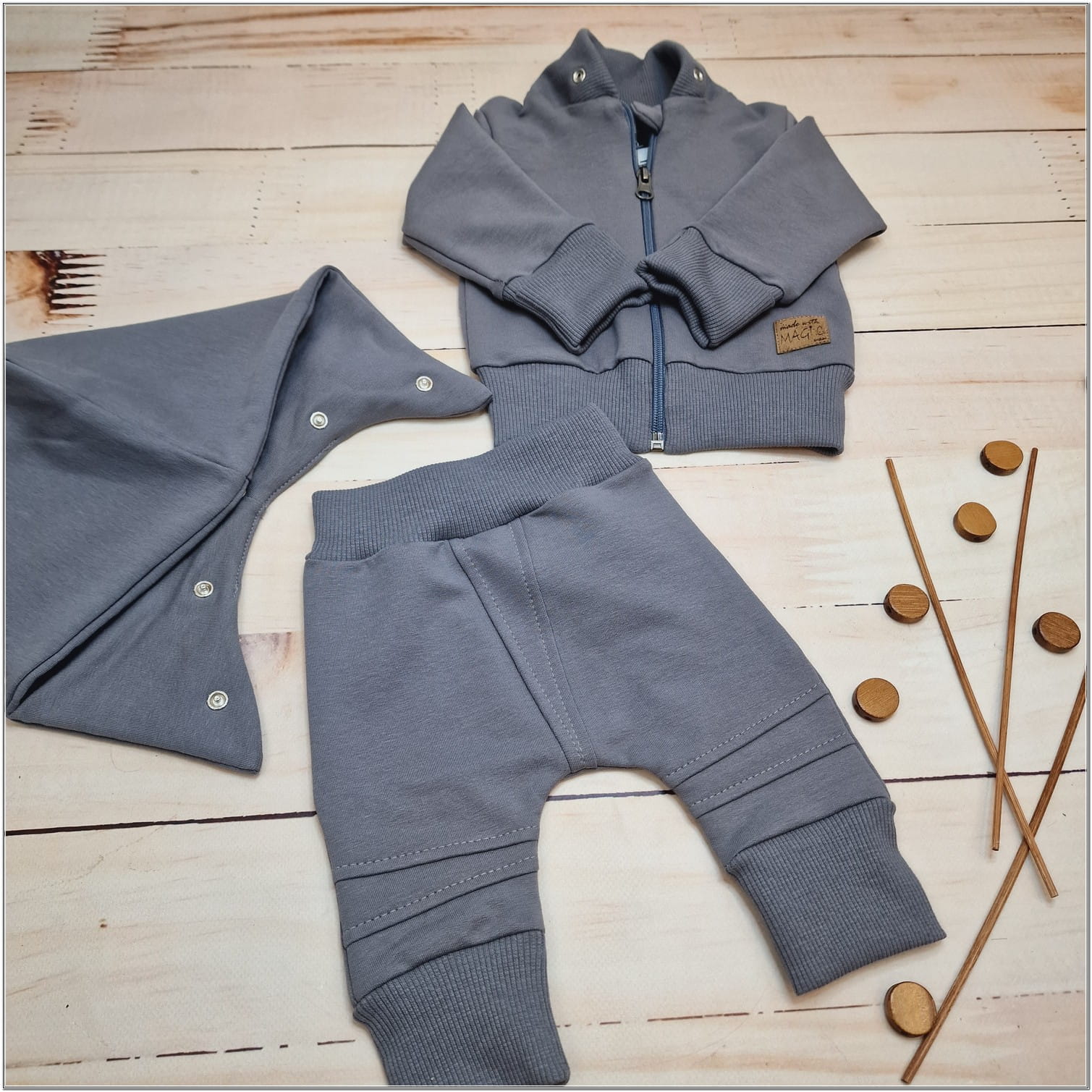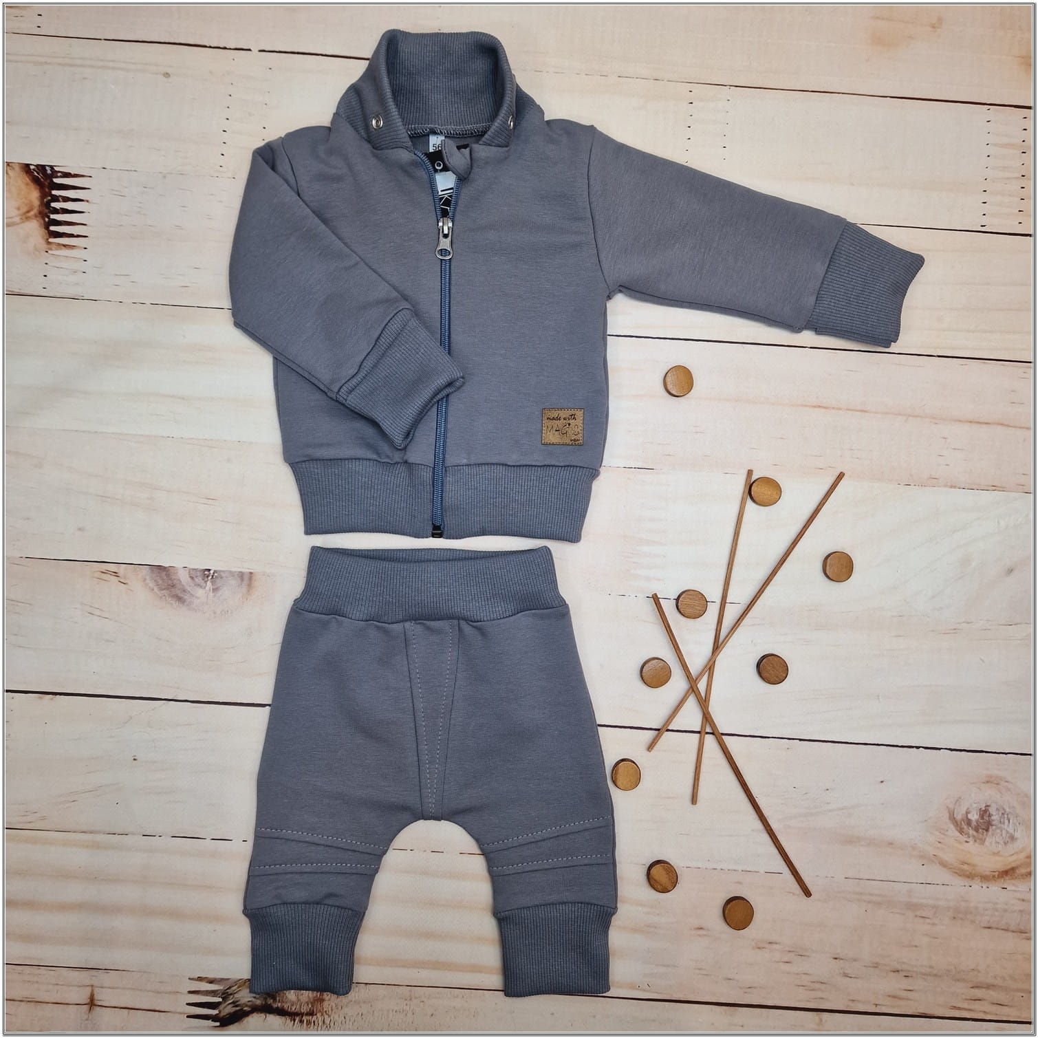 Bawełniany niemowlęcy 2-częściowy dresik w rozmiarach 56,62,68,74,80,86 rosnący z dzieckiem