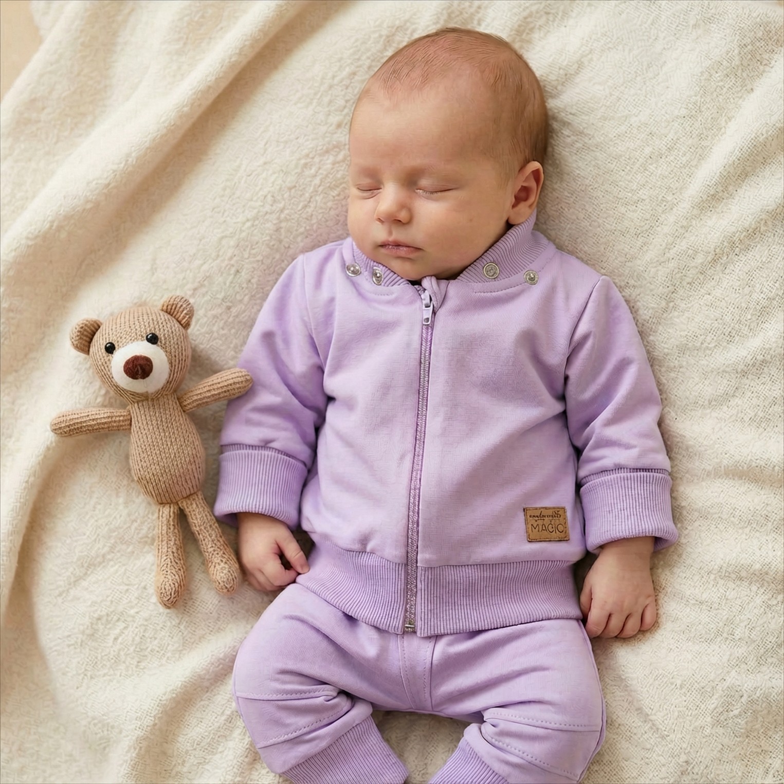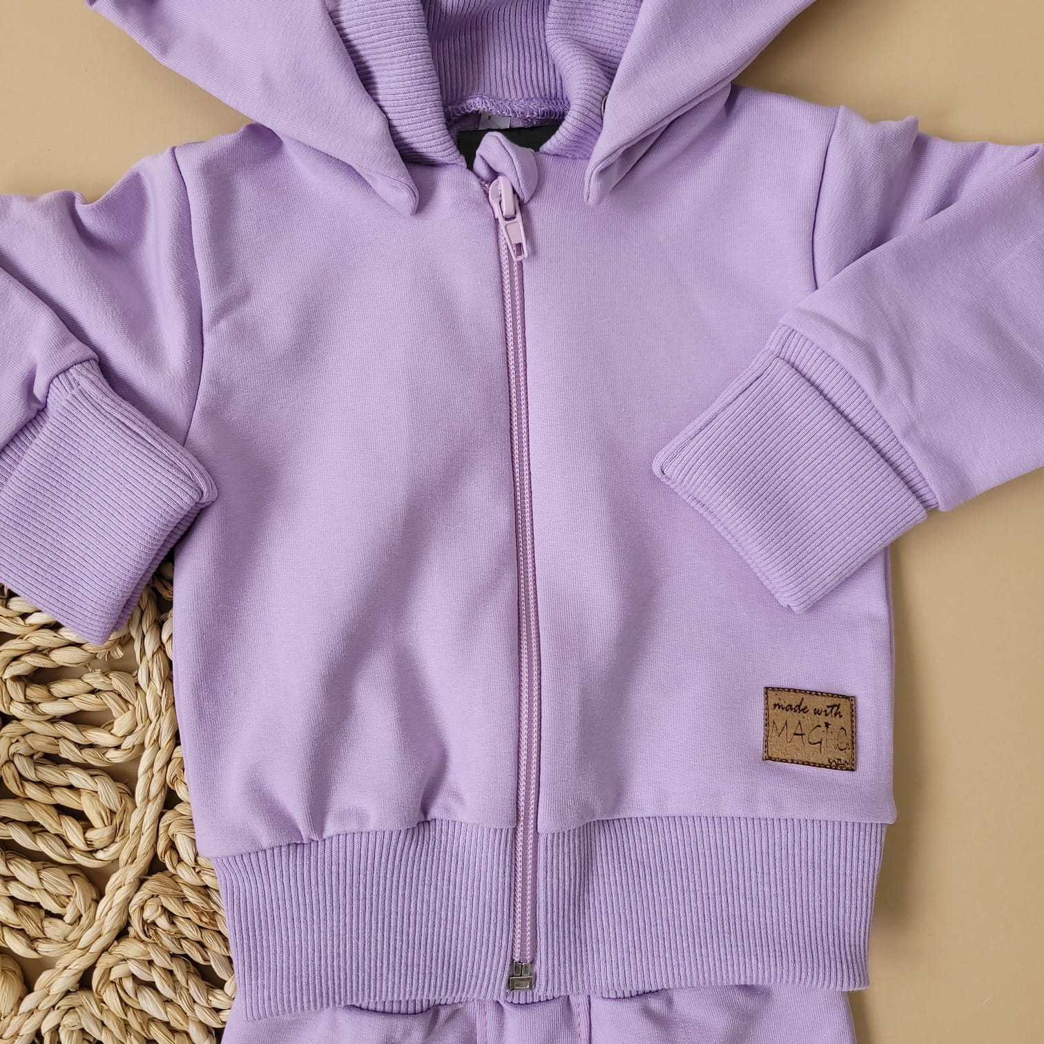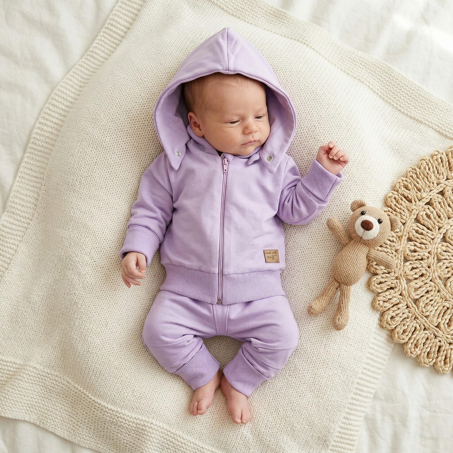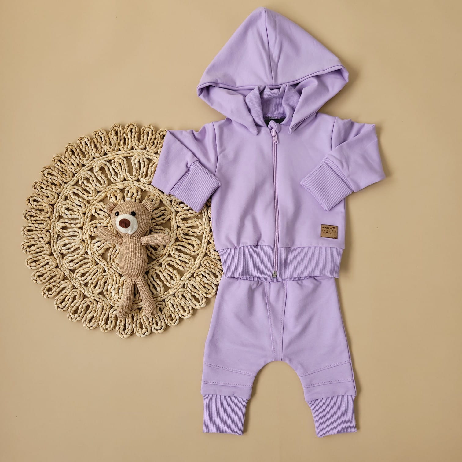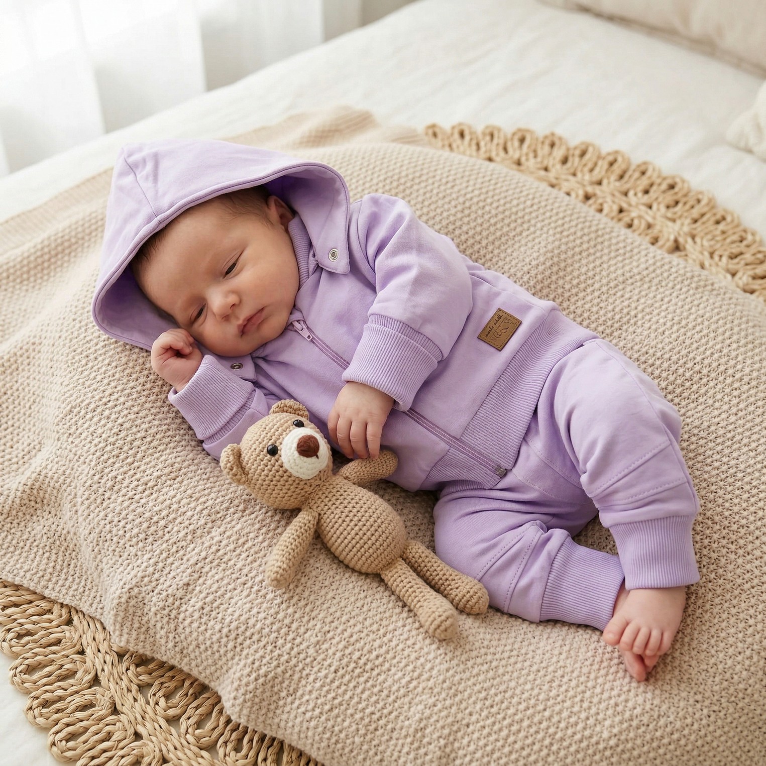 Dres niemowlęcy 2 cz bawełniany z odpinanym kapturem 56-86 soft lilac