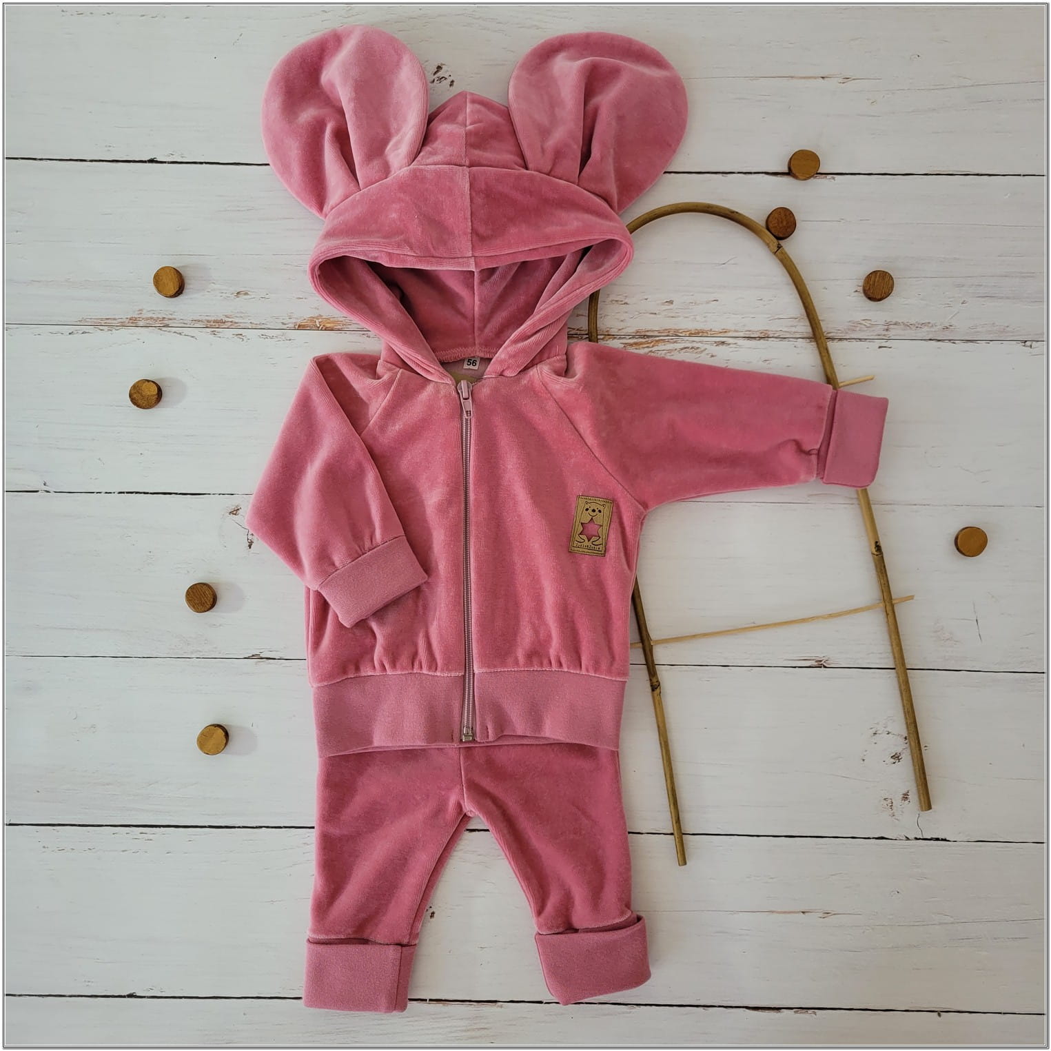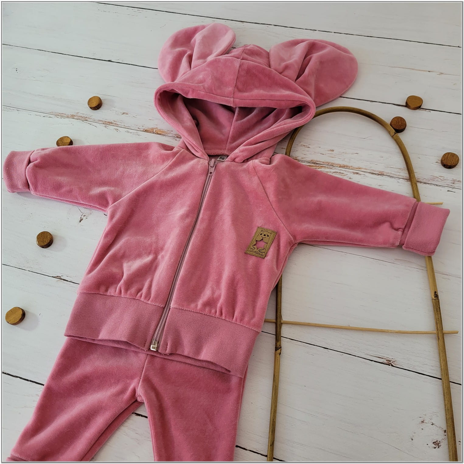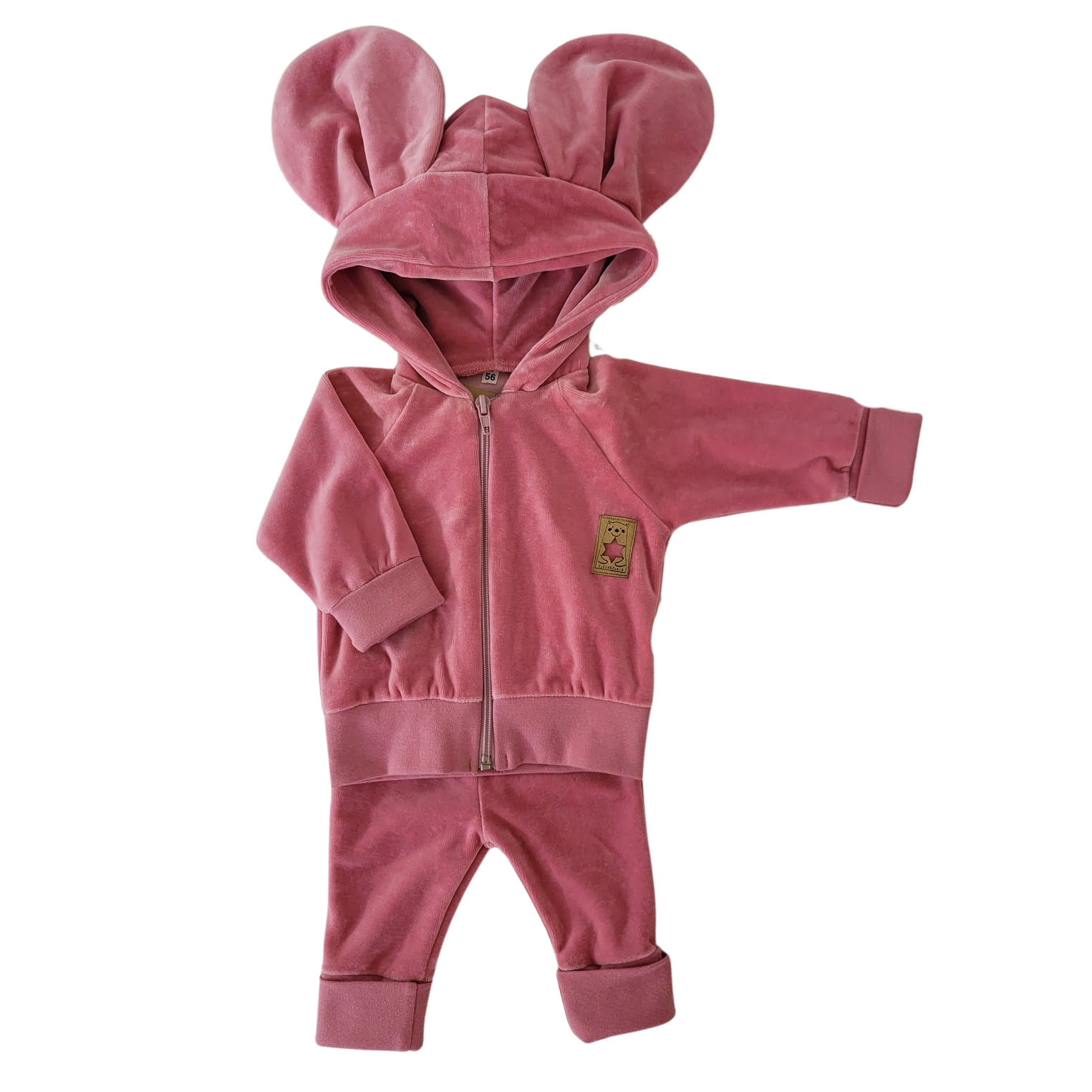 Dres niemowlęcy welurowy z dużymi uszami 56-86 brudny róż